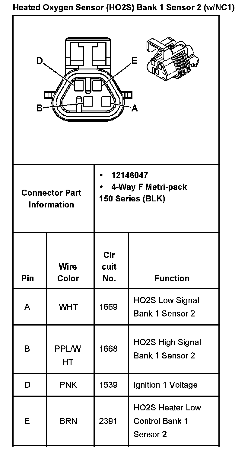 Heated Oxygen Sensor (HO2S) Bank 1 Sensor 2 (With RPO Code NC1):