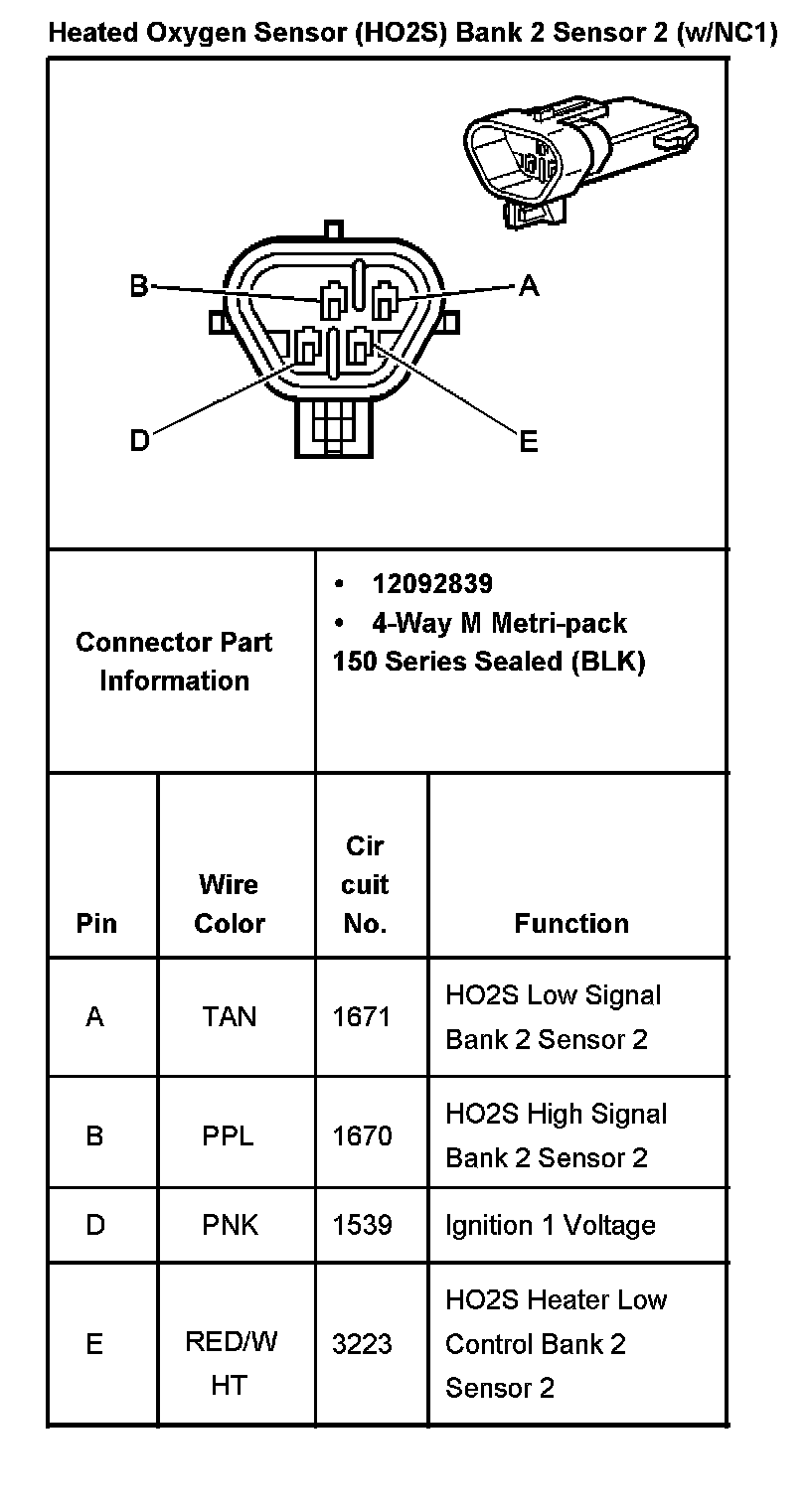 Heated Oxygen Sensor (HO2S) Bank 2 Sensor 2 (With RPO Code NC1):