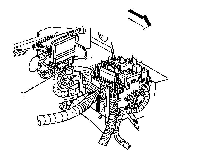 3. Disconnect the engine wiring harness electrical connector (1).