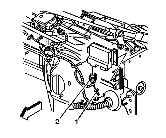 2. Disconnect the instrument panel (I/P) wiring harness electrical connector (2).