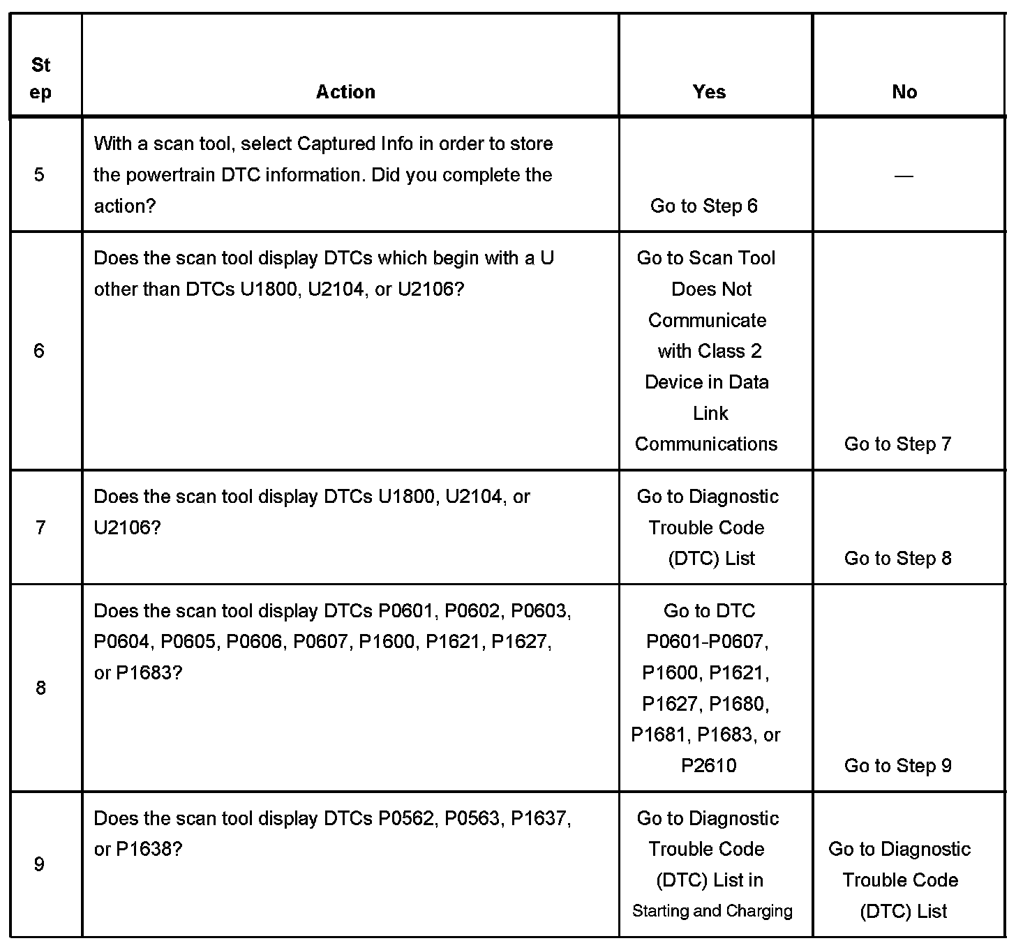 6. The presence of DTCs which begin with U, indicate that some other module is not communicating. Following the specified procedure will gather all the available information before you perform the tests. DTC U1800, U2104, and U2106 are CAN communications codes, and are not part of the class 2 Data Link system.