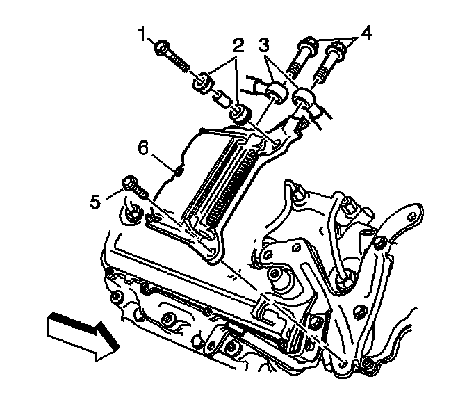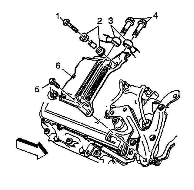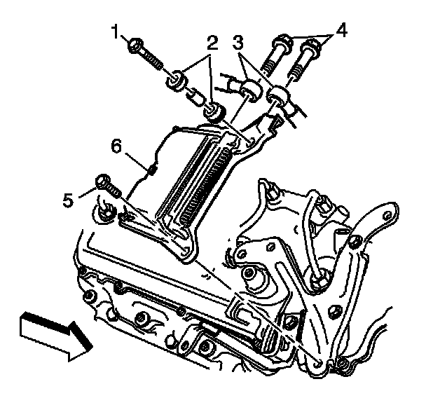 9. Remove the control module bolts (1, 5).