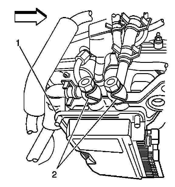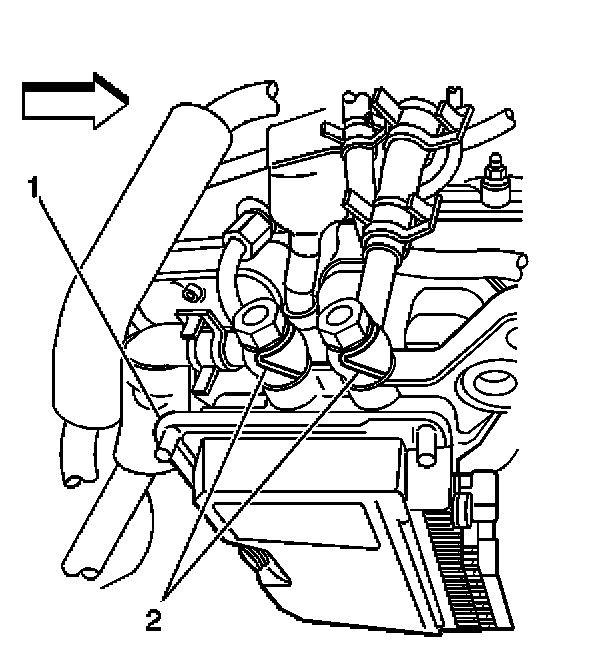 12. Remove the fuel lines (2) from the control module (1) and discard washers.