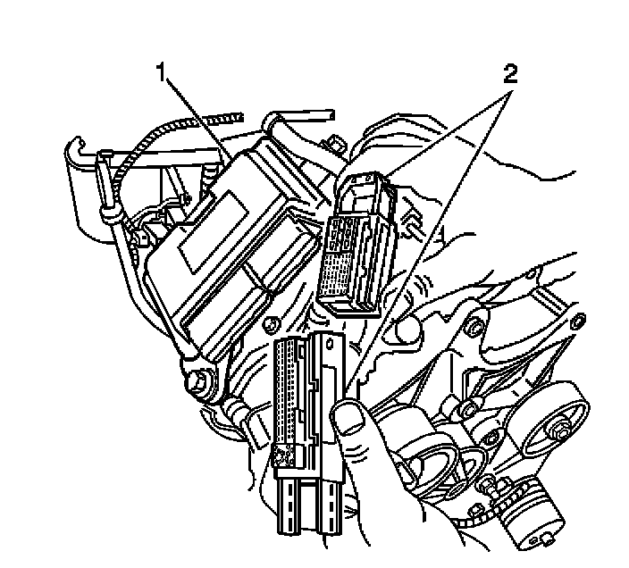 11. Disconnect the control module electrical connectors (2).