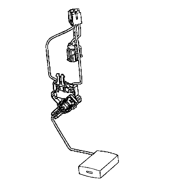 FUEL LEVEL SENSORThe fuel level sensor consists of a float, a wire float arm, and a ceramic resistor cord. The position of the float arm indicates the fuel level. The fuel level sensor contains a variable resistor which changes resistance in correspondence with the amount of fuel in the fuel tank. The powertrain control module (PCM) sends the fuel level information via the class 2 circuit to the instrument panel (IP) cluster. This information is used for the IP fuel gage and the low fuel warning indicator, if applicable. The PCM also monitors the fuel level input for various diagnostics.