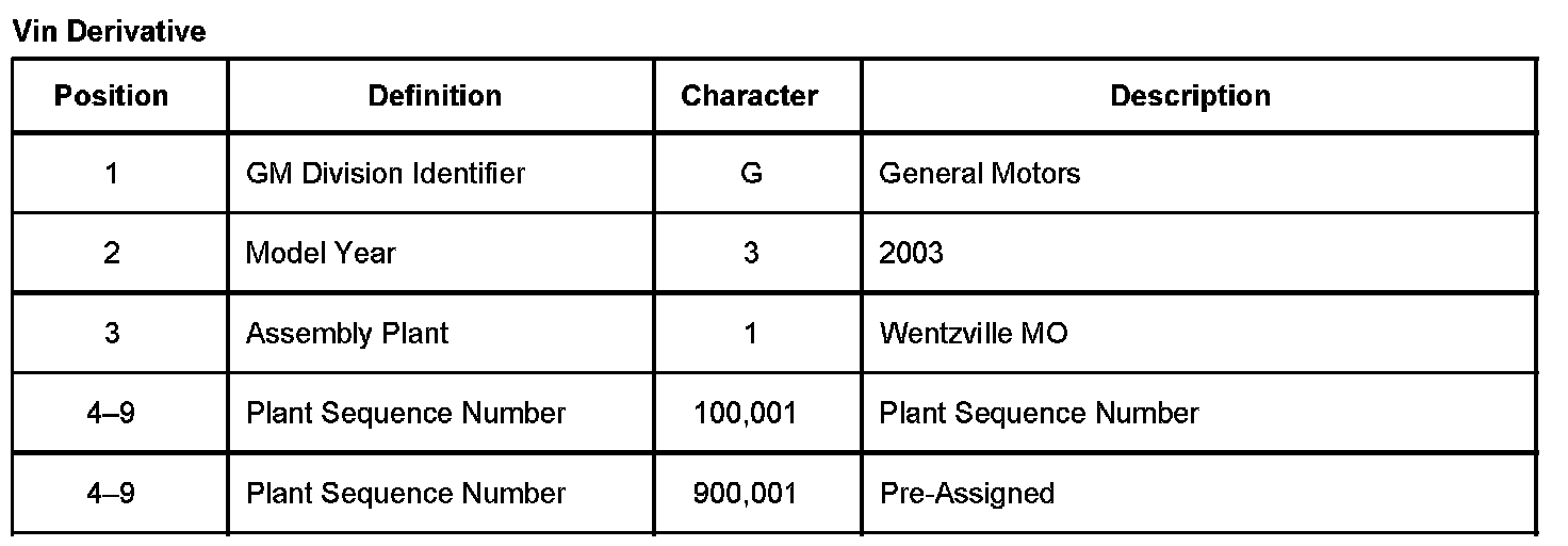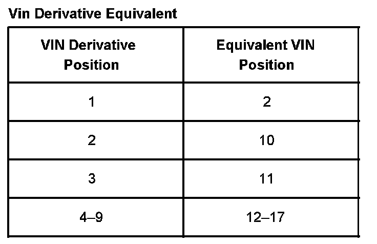 VIN Derivative Equivalent: