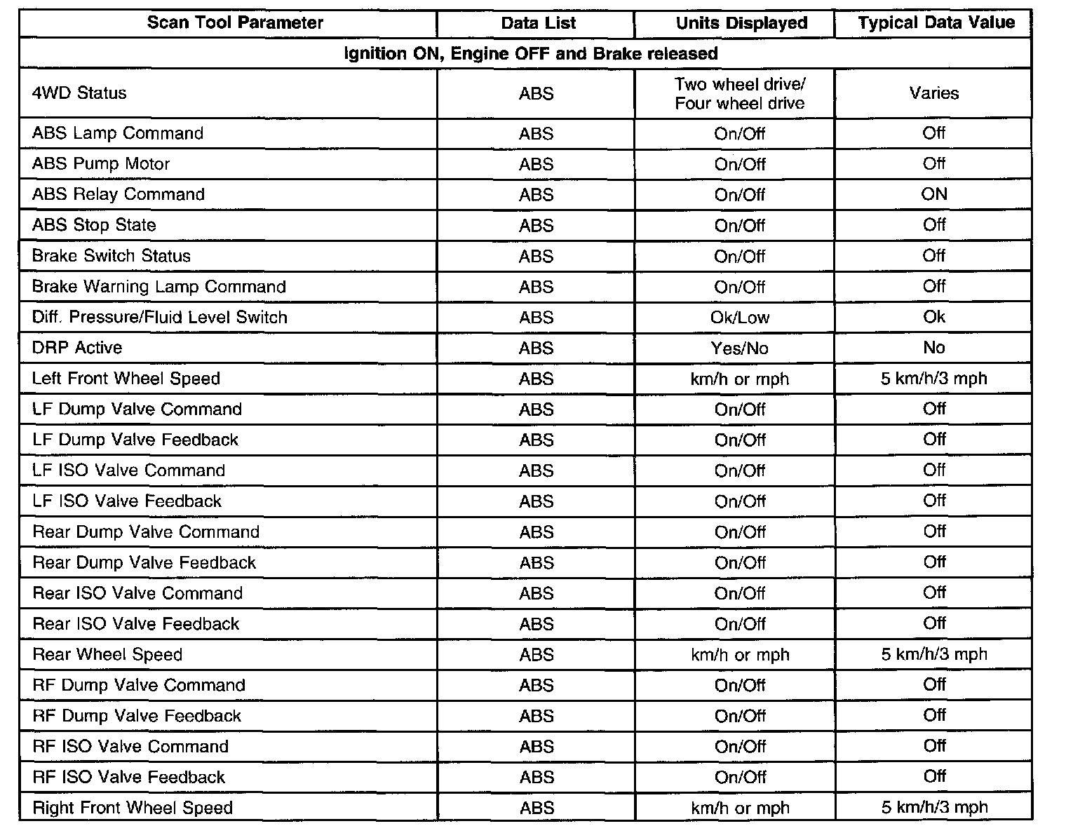 Scan Tool Data List: