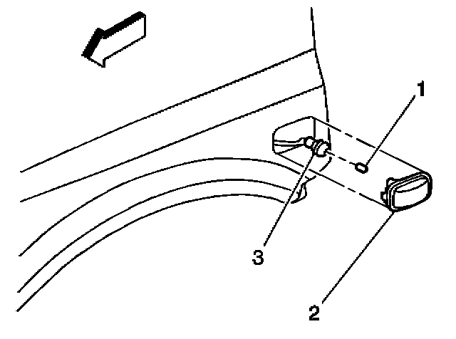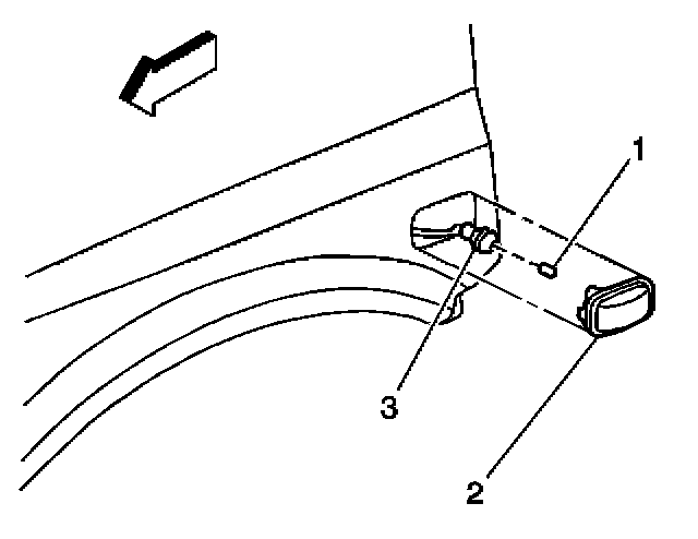 1. Push the light assembly (2) towards the front of the vehicle while gently prying the rear edge of the light assembly away from the fender with a small flat-bladed tool in order to remove the light assembly.