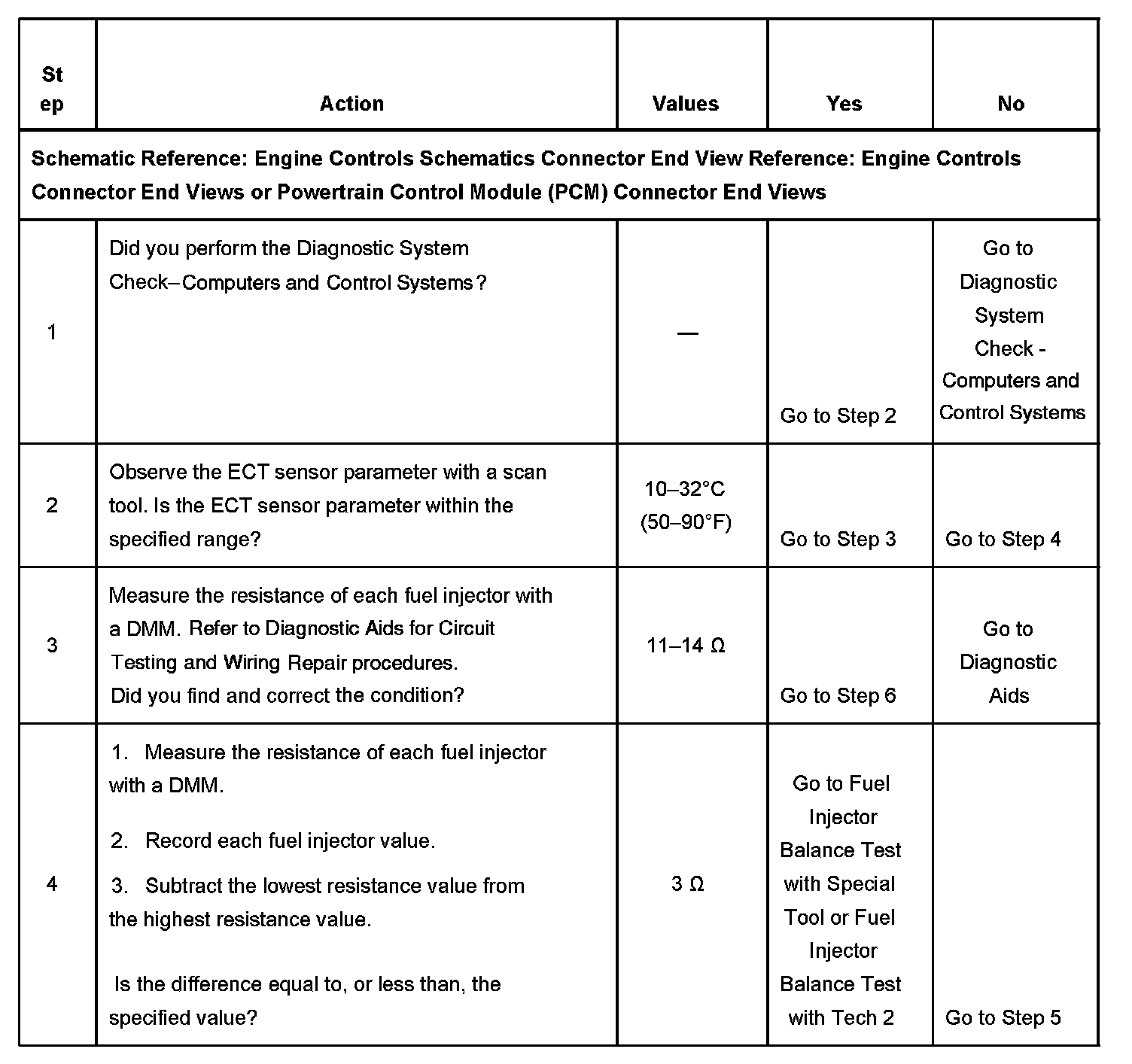 - If the fuel injector coil test does not isolate the condition perform the fuel injector balance test. Refer to Fuel Injector Balance Test with Special Tool or Fuel Injector Balance Test with Tech 2. Component Tests and General Diagnostics Component Tests and General Diagnostics