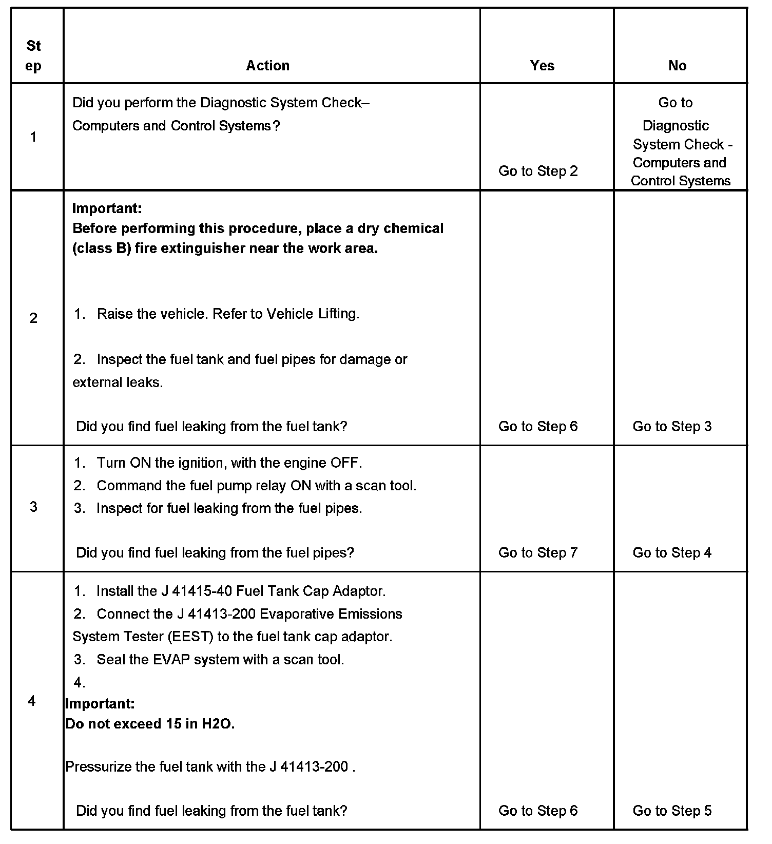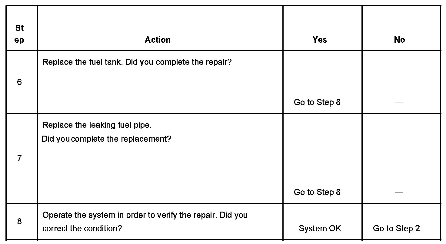 4. This step tests for fuel leaks below the fuel tank fuel level.