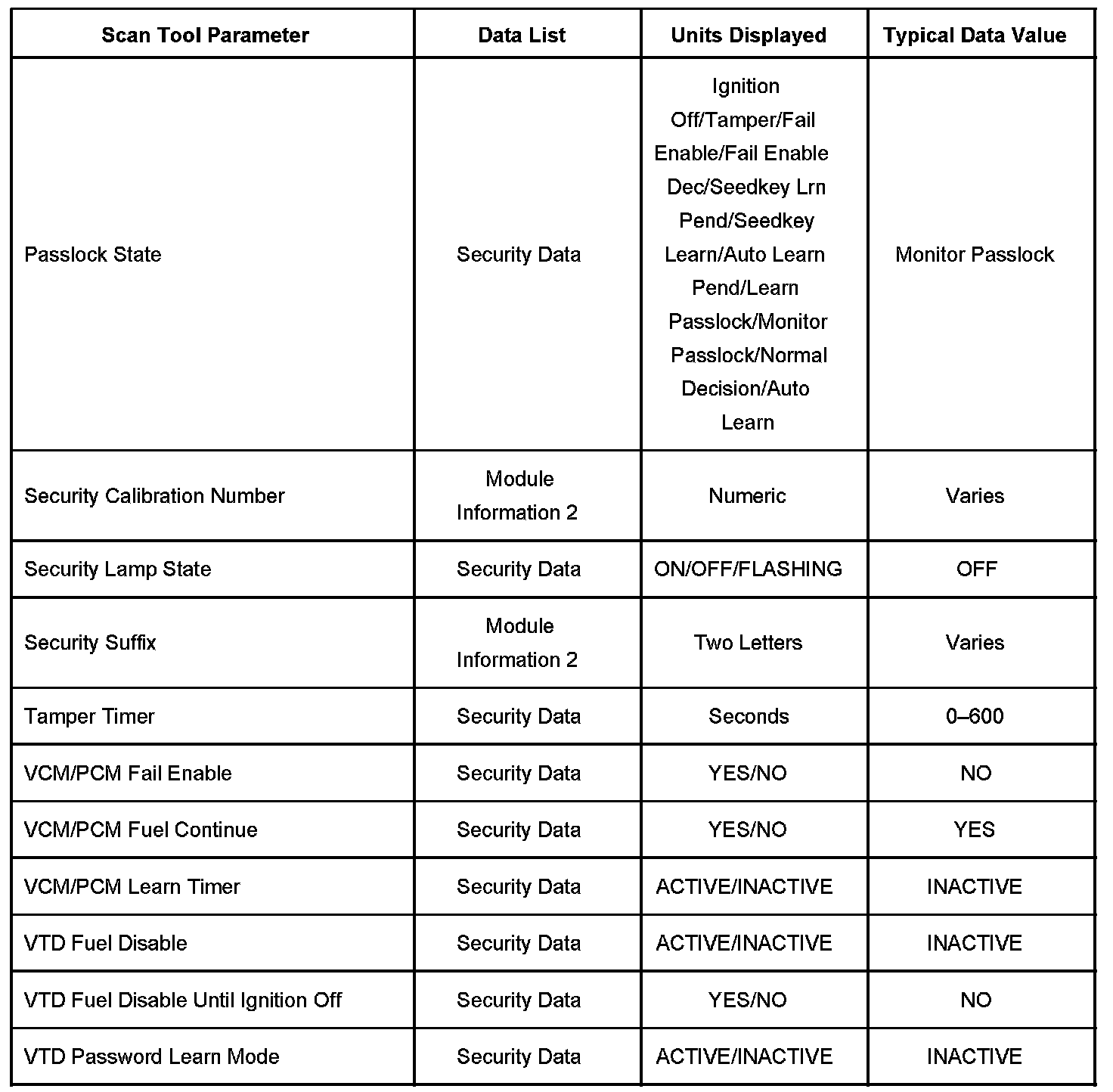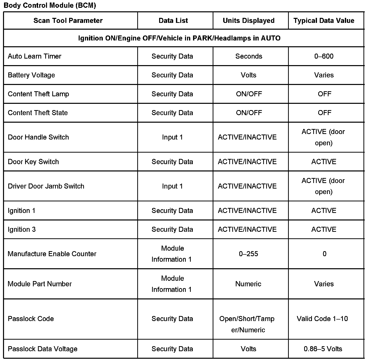 Scan Tool Data List - Antitheft System