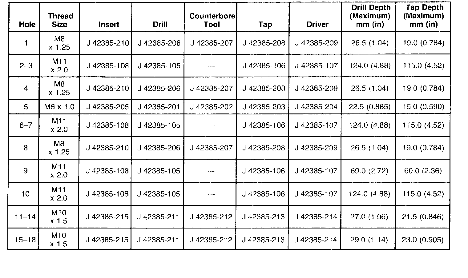 Thread Repair Specifications