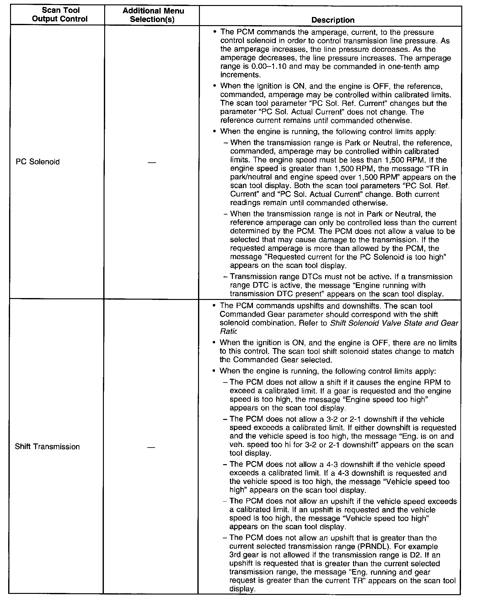 Scan Tool Output Controls