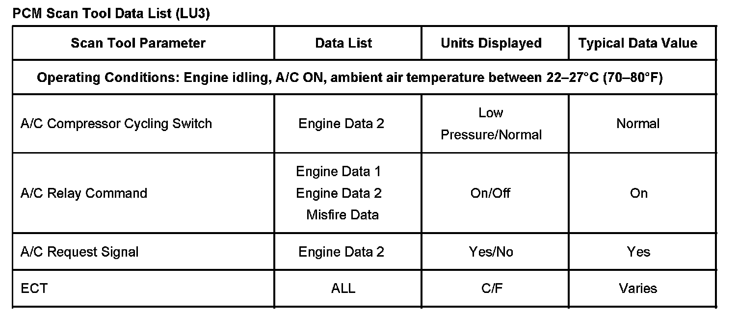 Scan Tool Data List - Powertrain Control Module (PCM)