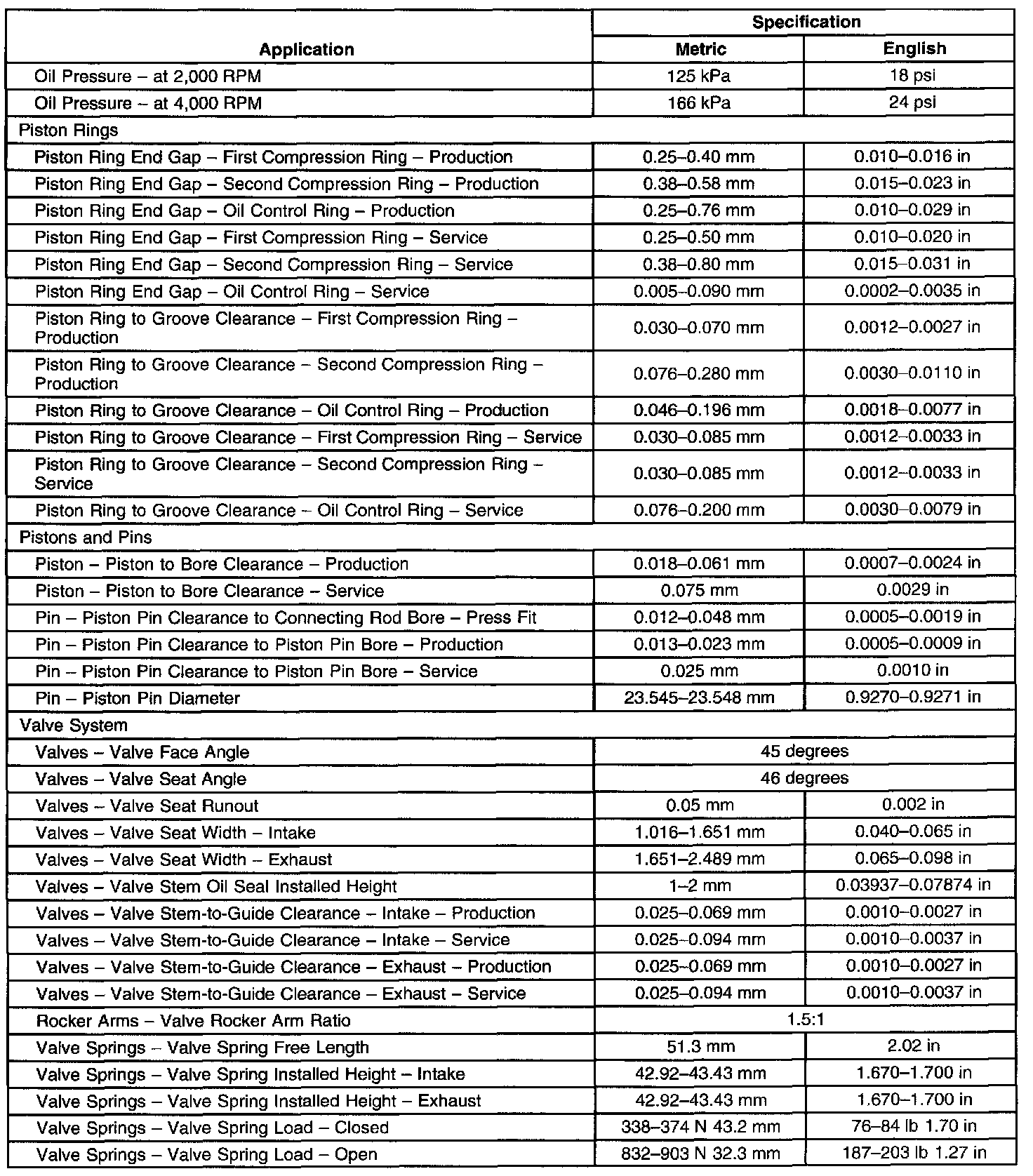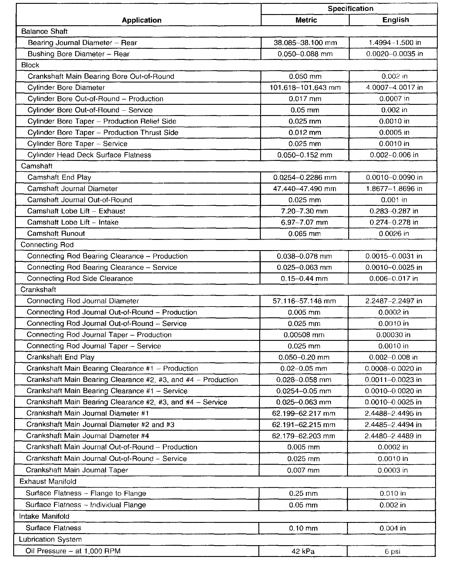 Engine Mechanical Specifications