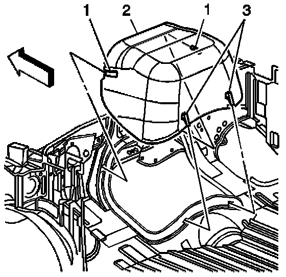 1. Remove the front passenger seat. Refer to "Seat Replacement - Bucket".