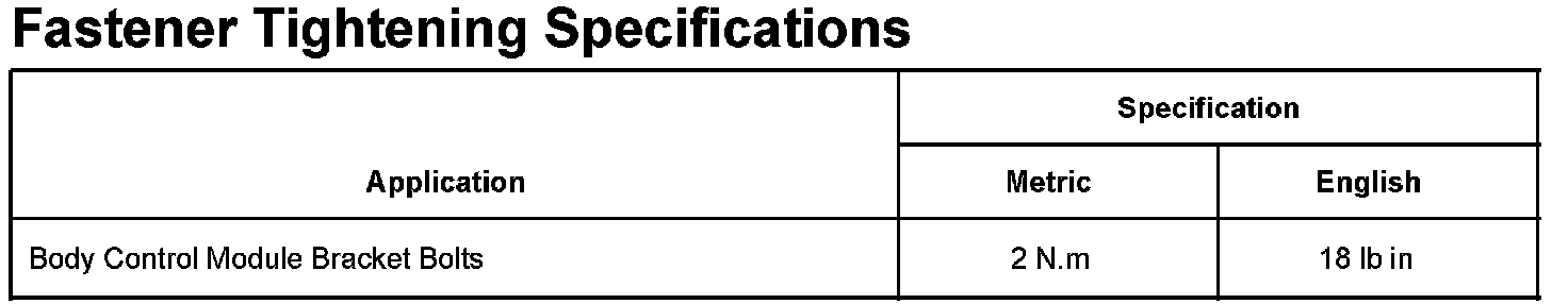 Body Control Systems: Specifications