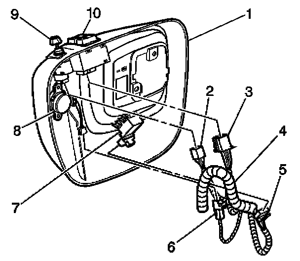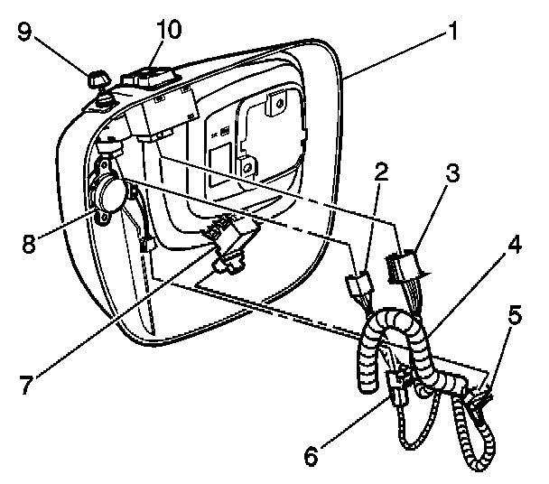 3. Install the electrical connector (2) to the power mirror switch (9).