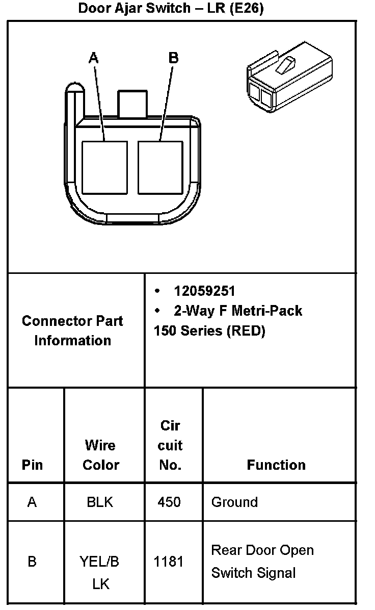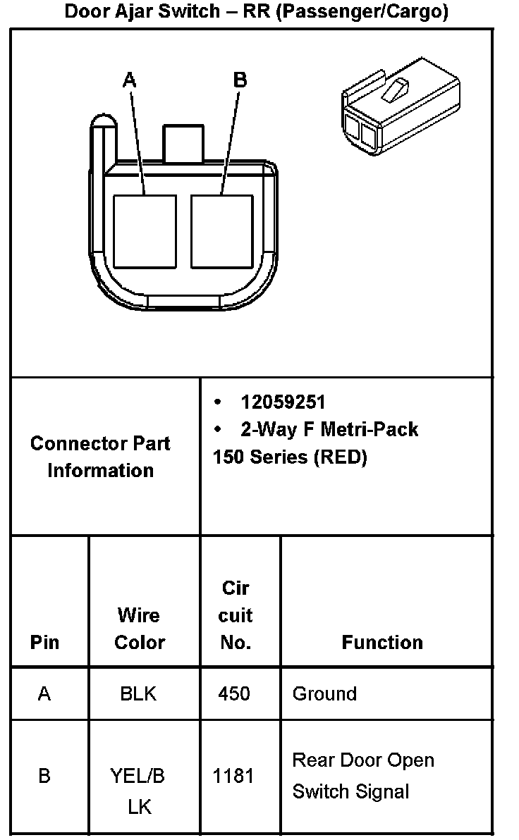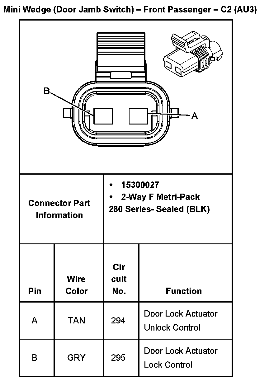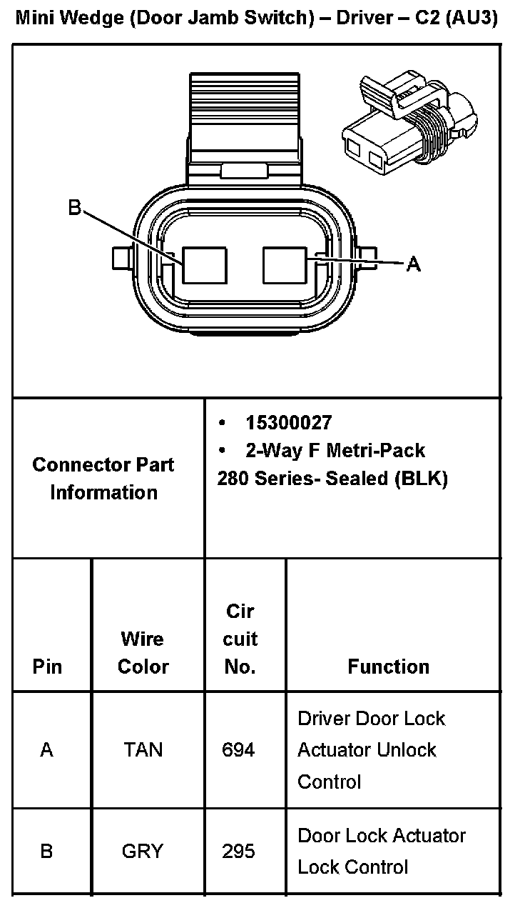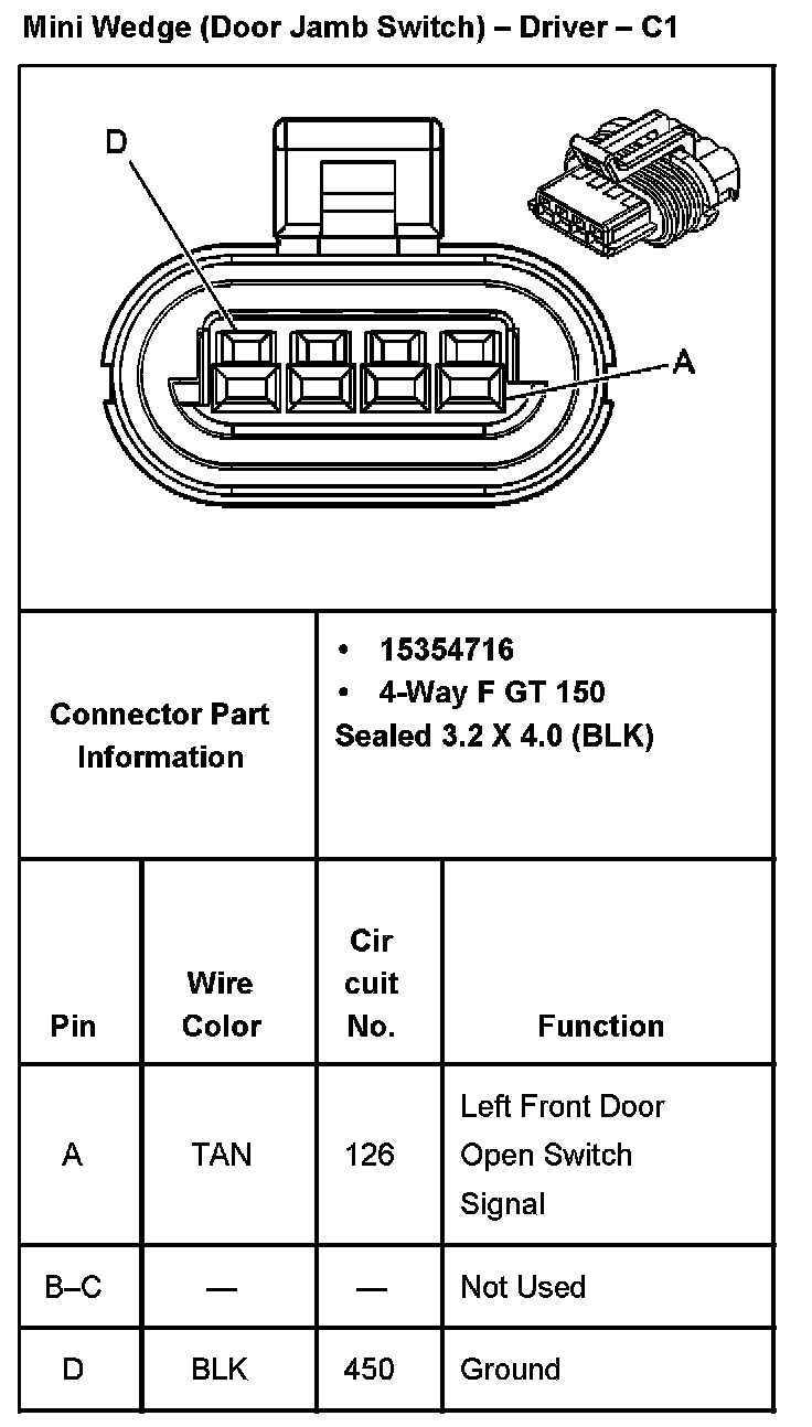 Mini Wedge (Door Jamb Switch) - Driver - C2 With RPO Code AU3: