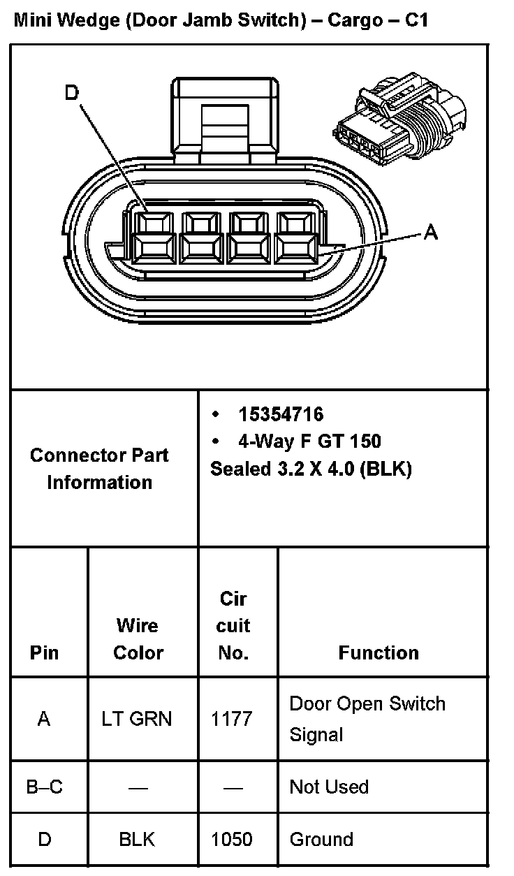 Mini Wedge (Door Jamb Switch) - Cargo - C2 With RPO Code AU3: