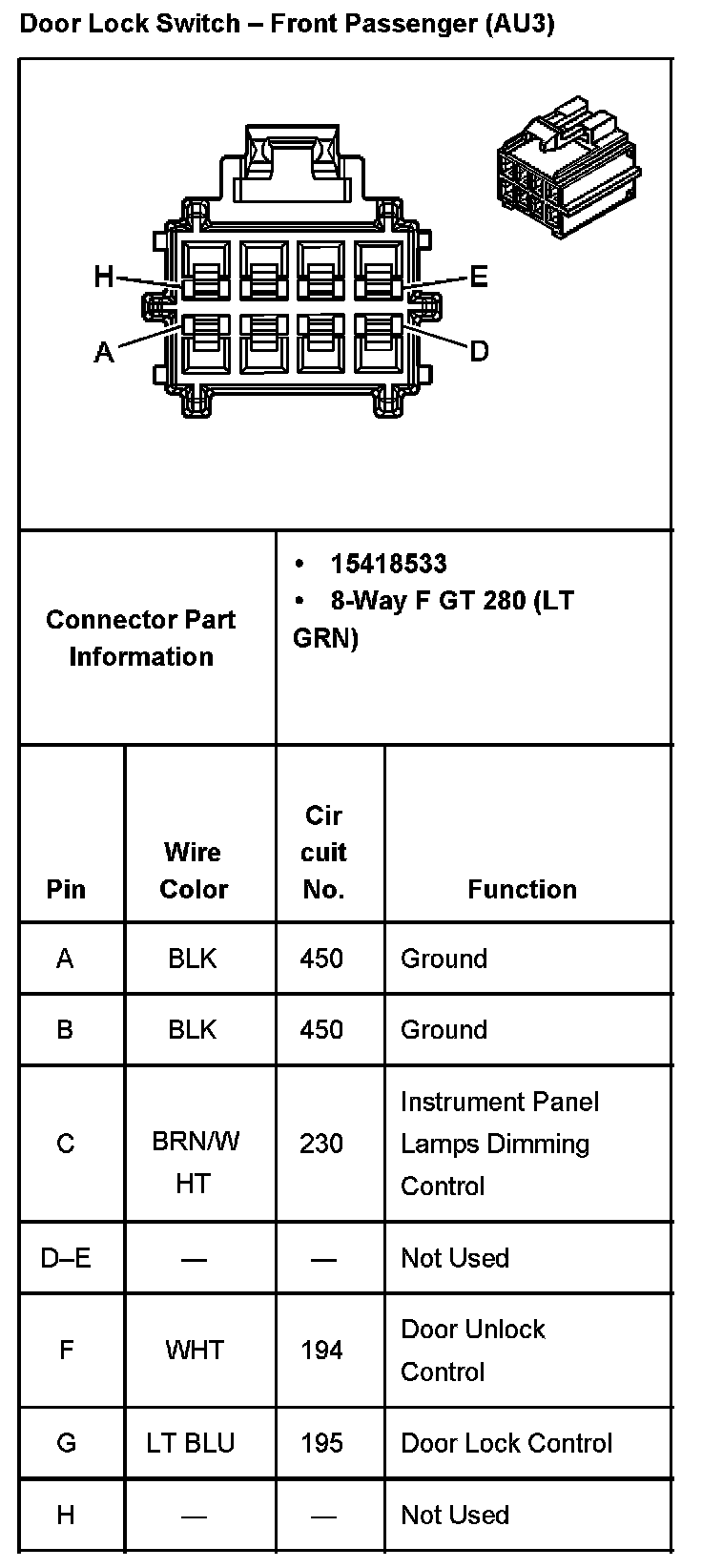 Door Lock Switch - Driver With RPO Code AU3: