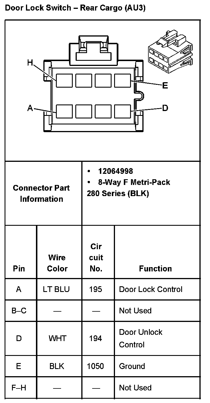 Door Lock Switch - Rear Cargo With RPO Code AU3: