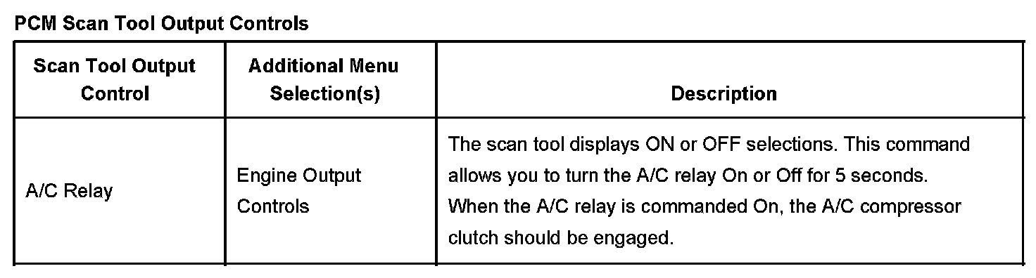 PCM Scan Tool Output Controls: