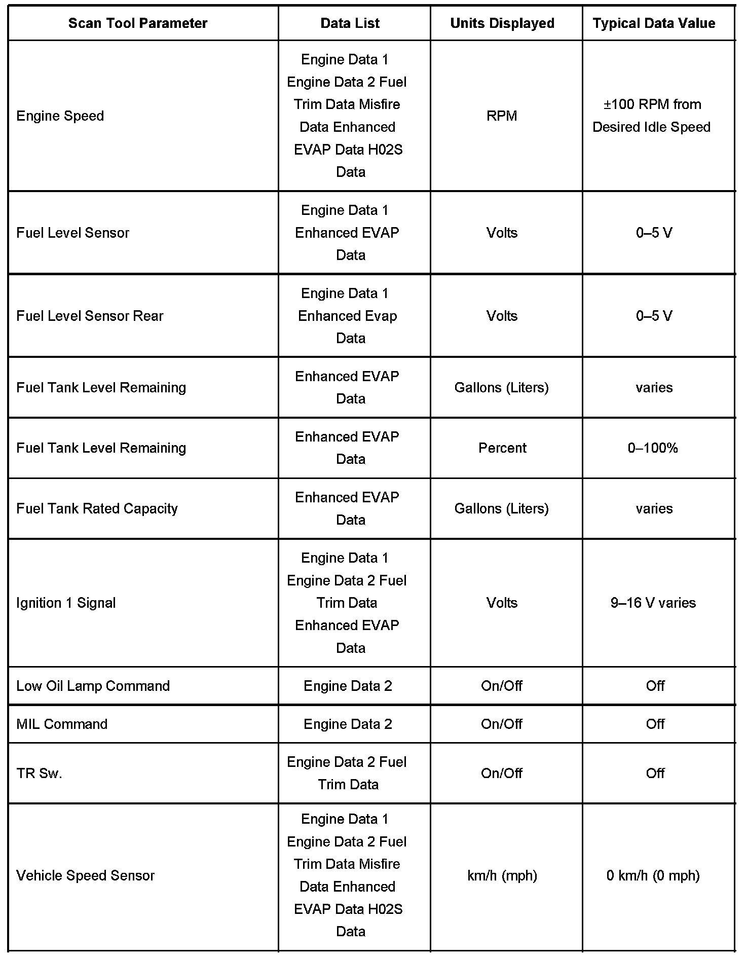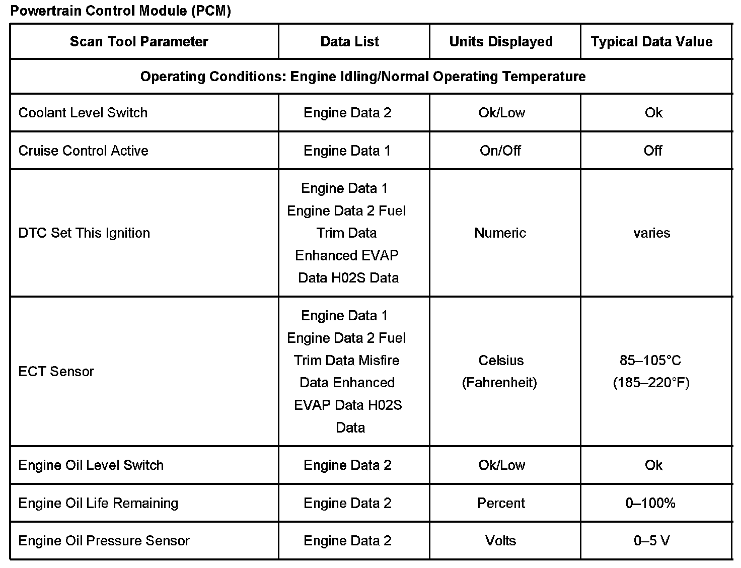 Scan Tool Data List - Powertrain Control Module (PCM)