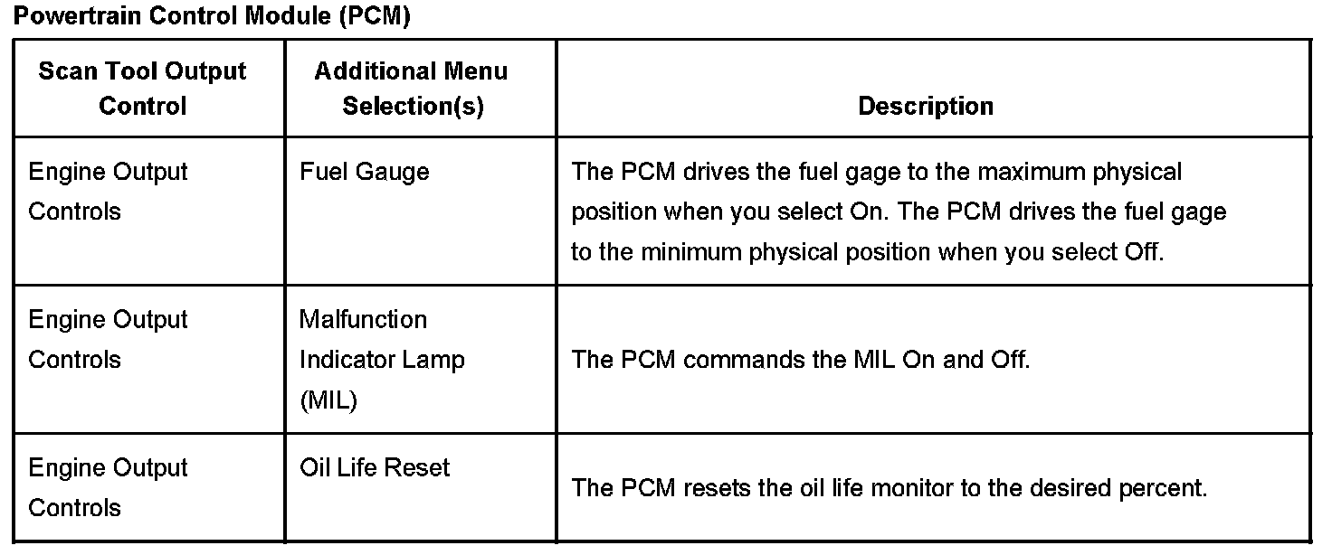 Scan Tool Output Controls - Powertrain Control Module (PCM)
