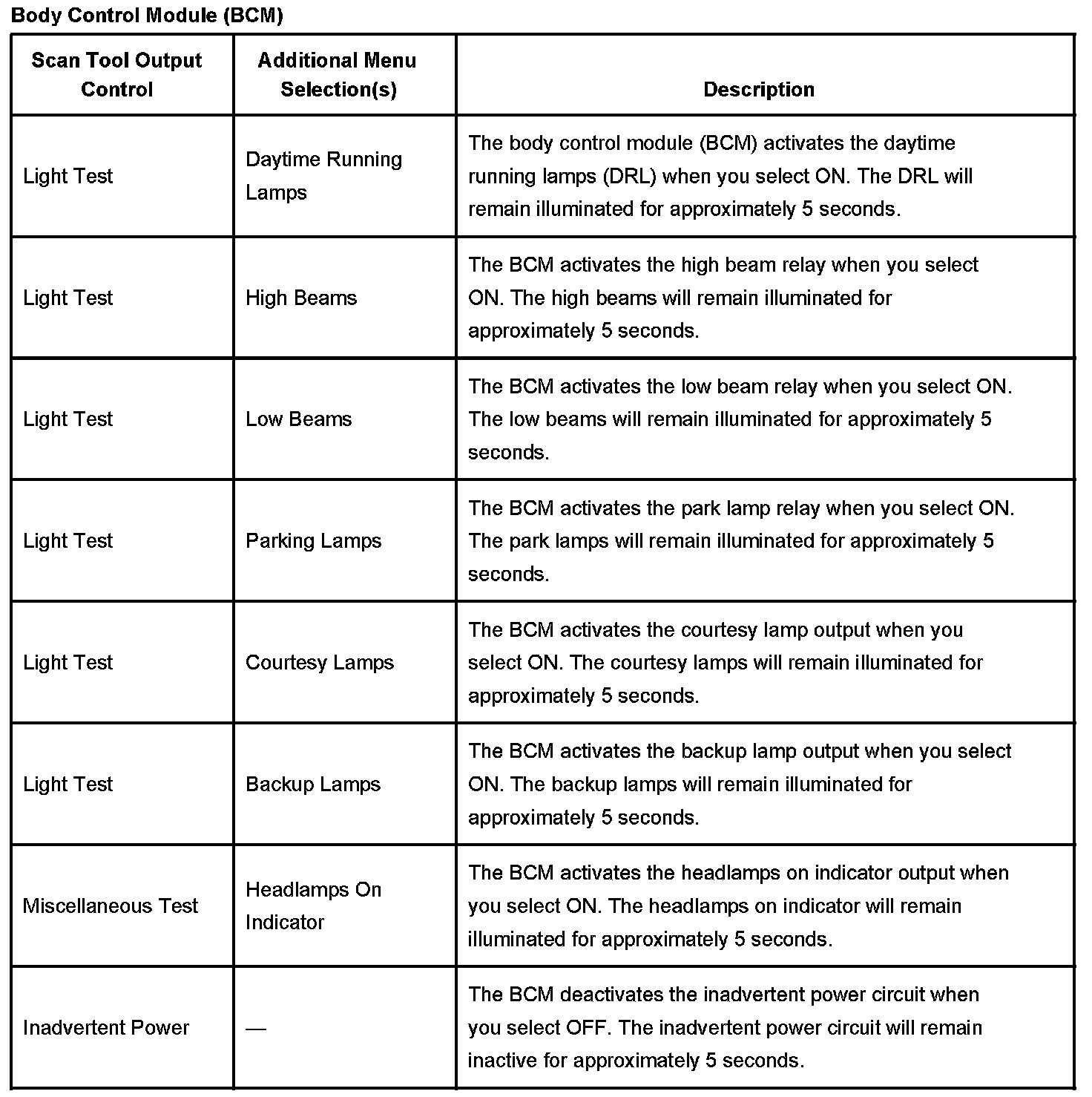 Scan Tool Output Controls: