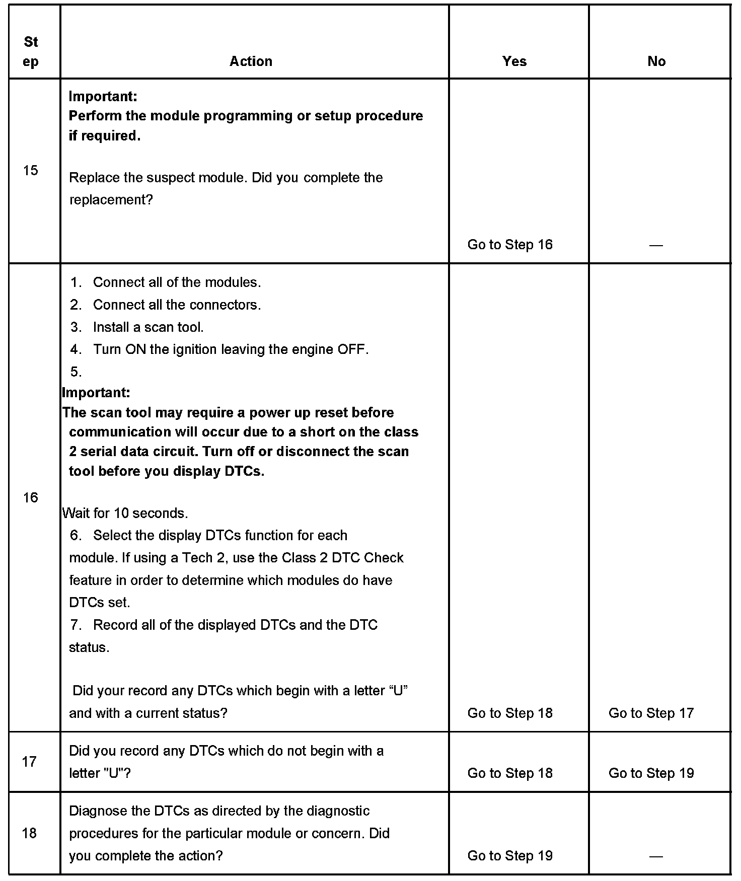 2. A partial loss of communication in the class 2 serial data circuit uses a different procedure than a total loss of communication of the class 2 serial data circuit.