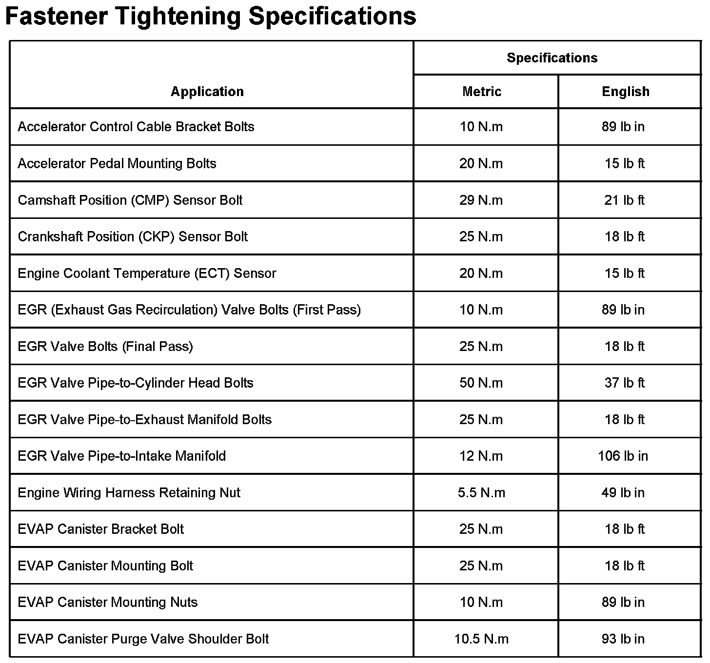 Fastener Tightening Specifications Part 1: