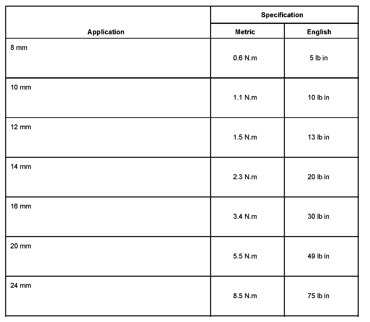 The metric fasteners on GM products are designed to new, international standards. The following are the common sizes and pitches, except for special applications: