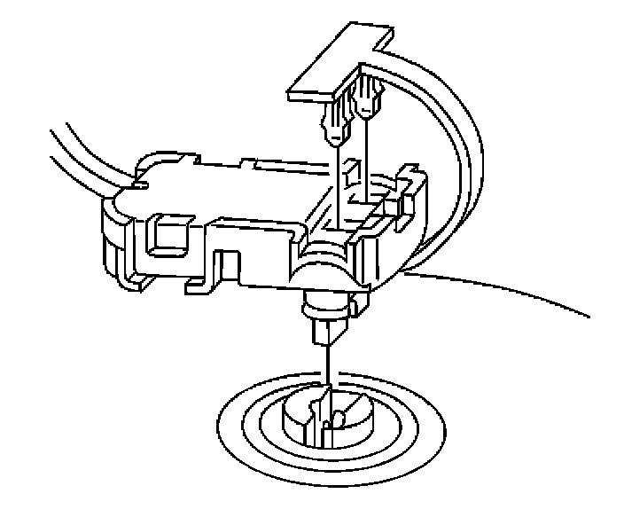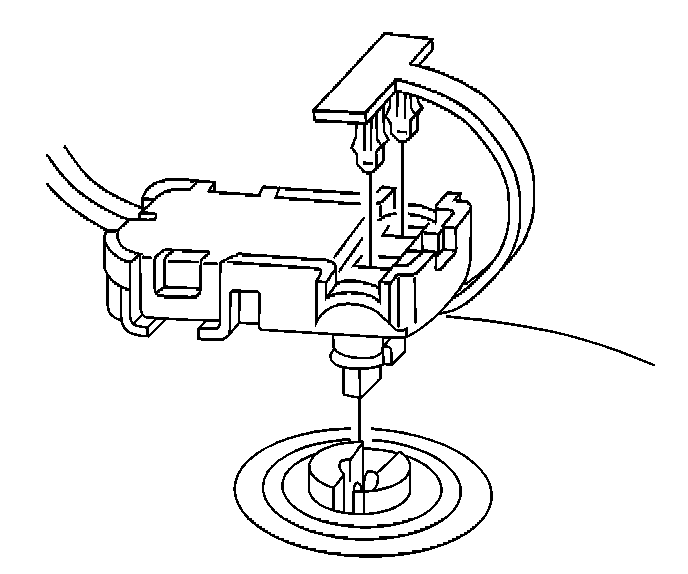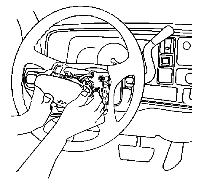 5. Press the inflator module into the steering wheel firmly enough that the module engages and latches the notched pins in the leaf springs.