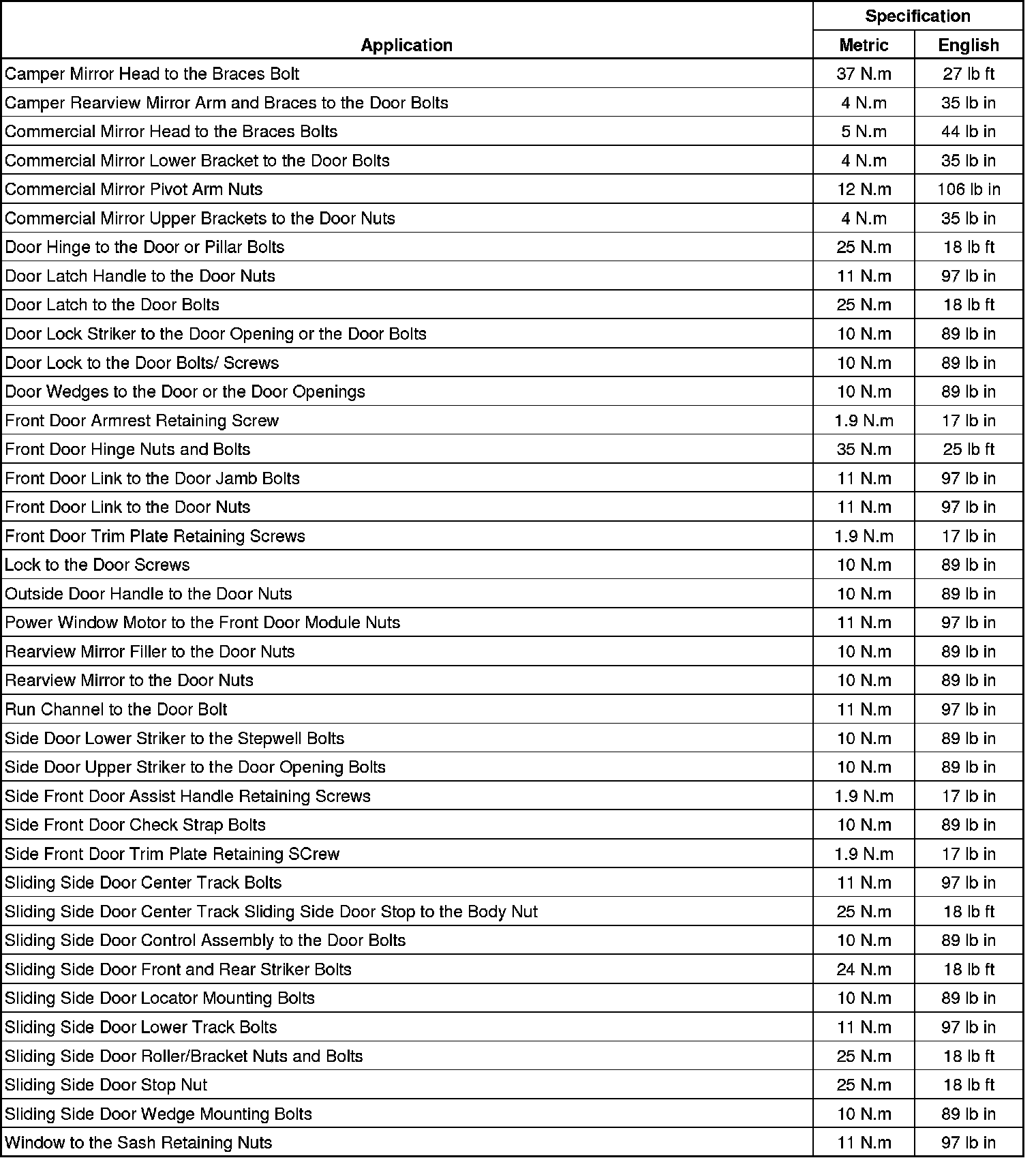 Fastener Tightening Specifications