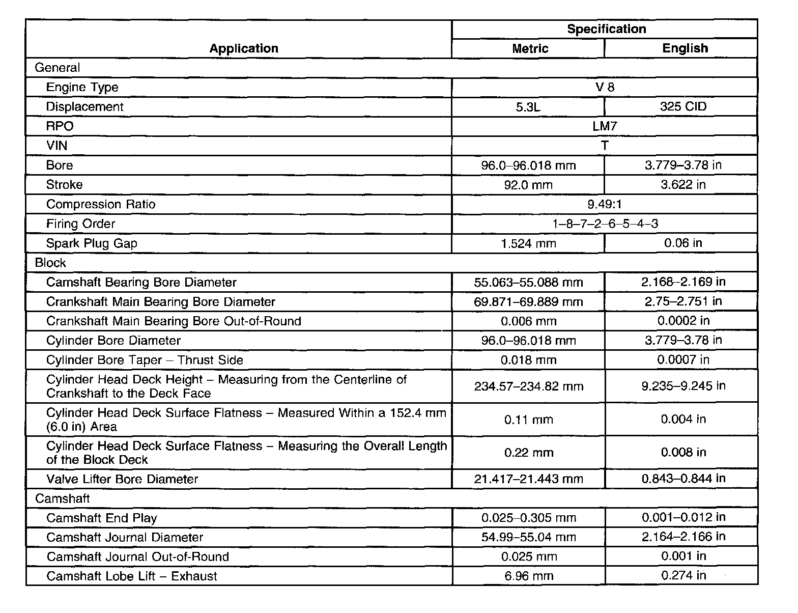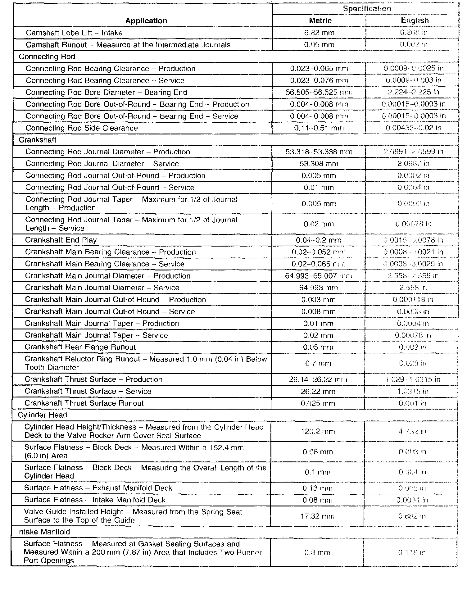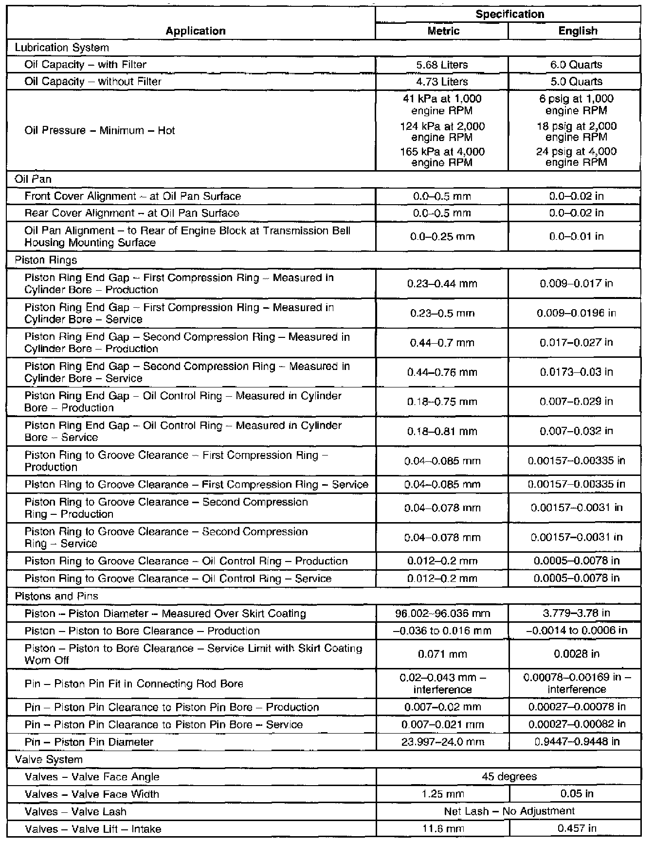 Engine Mechanical Specifications
