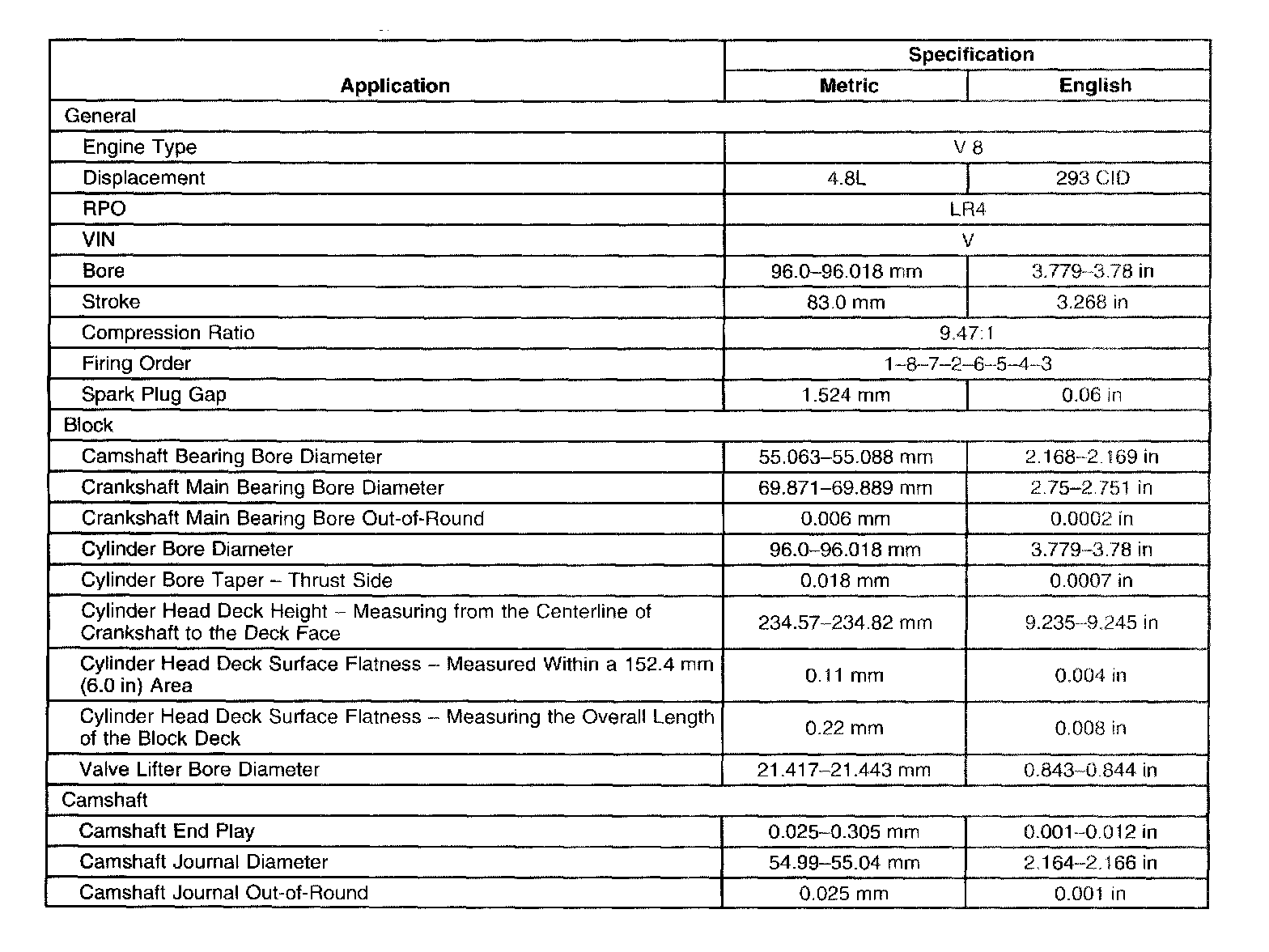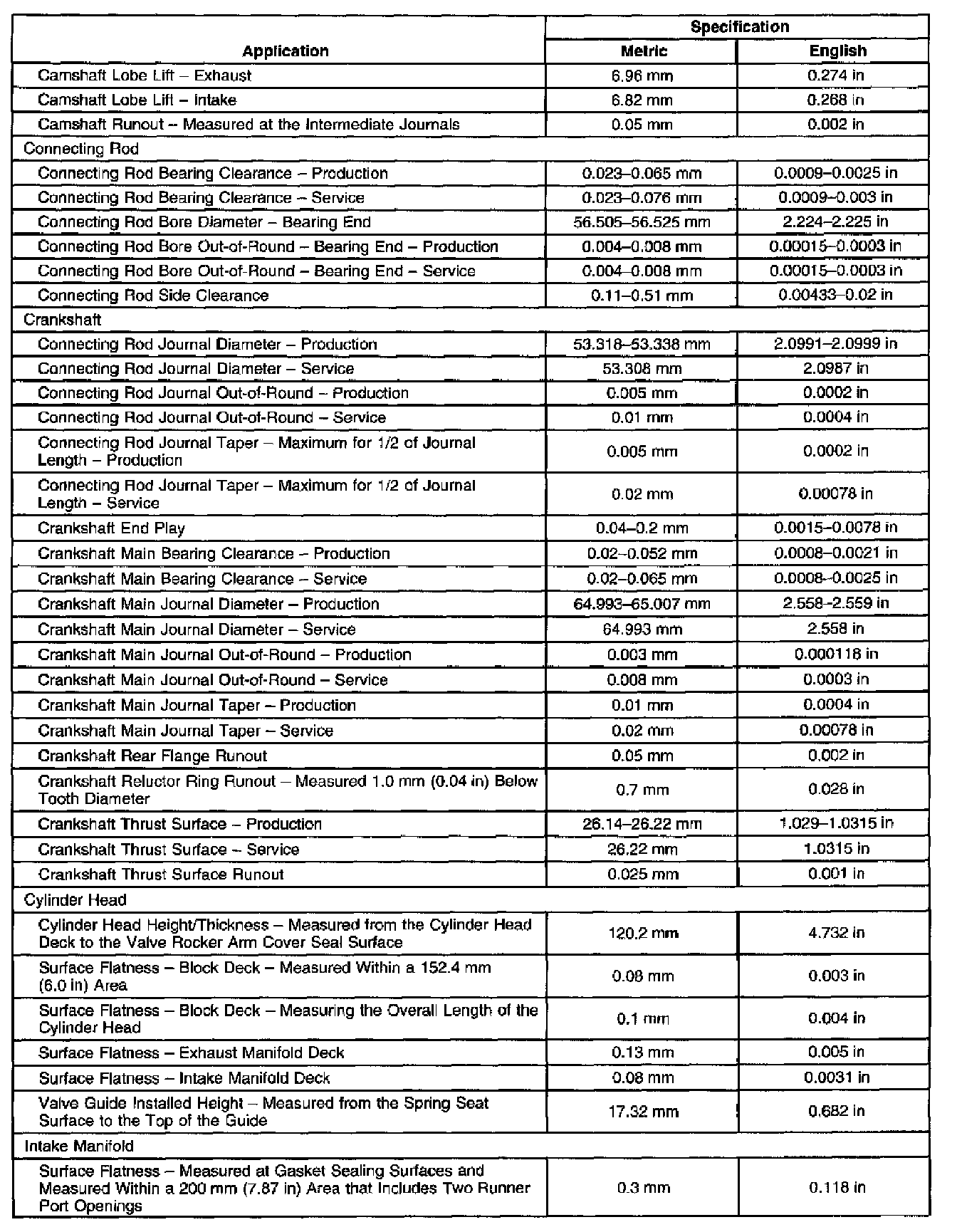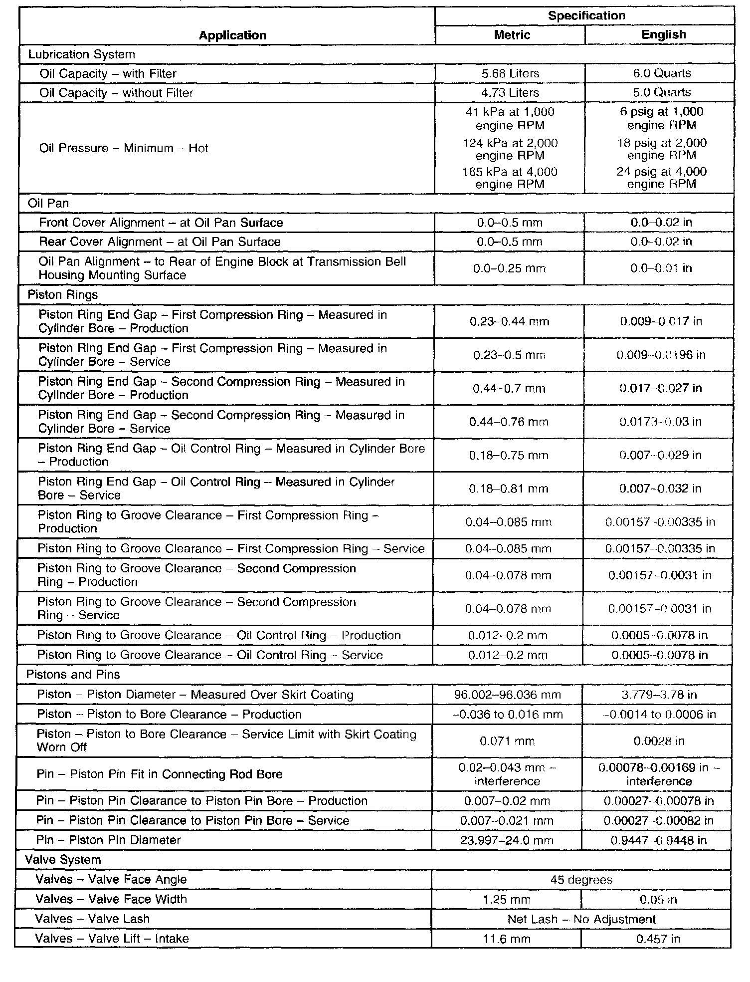 Engine Mechanical Specifications