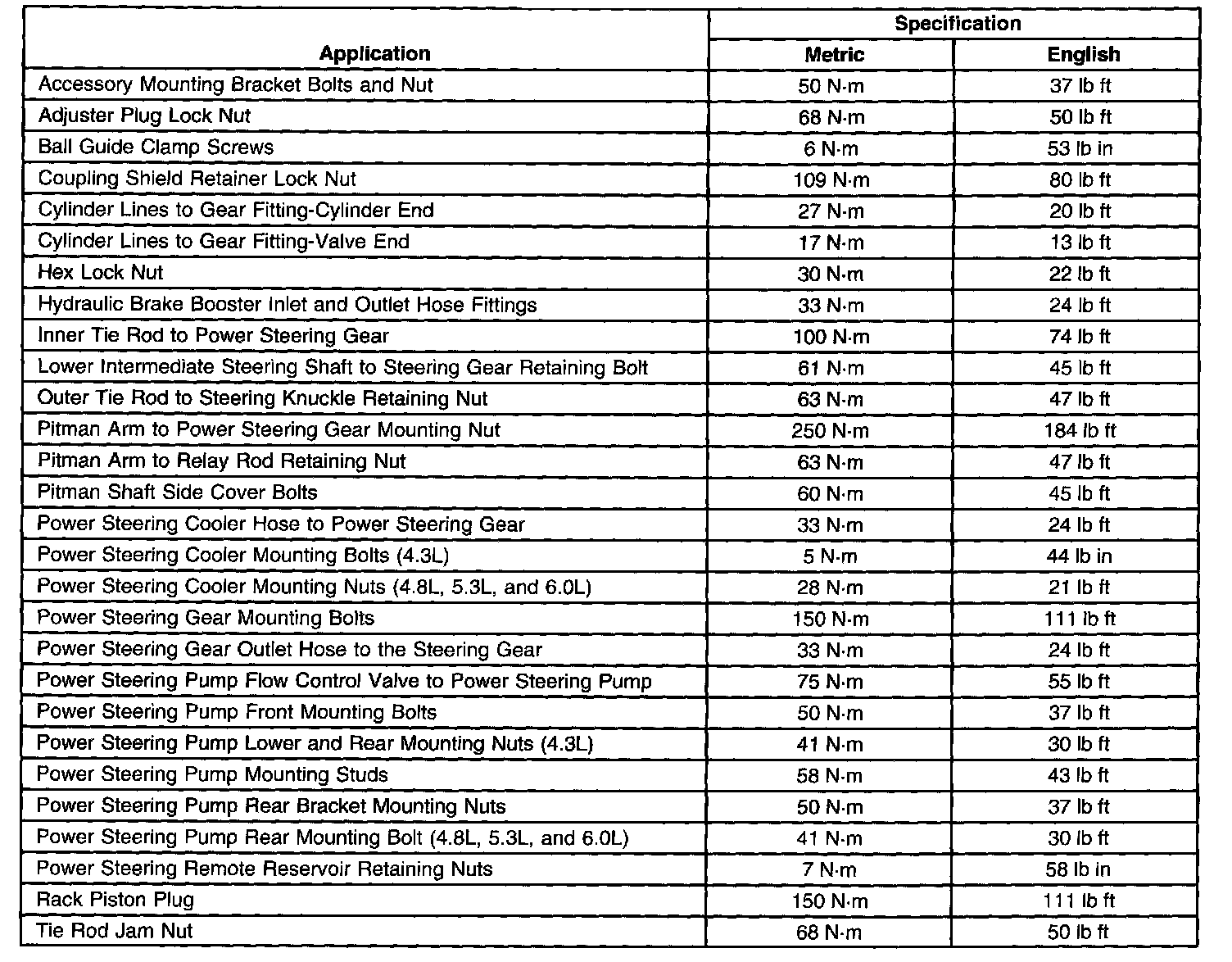 Fastener Tightening Specifications