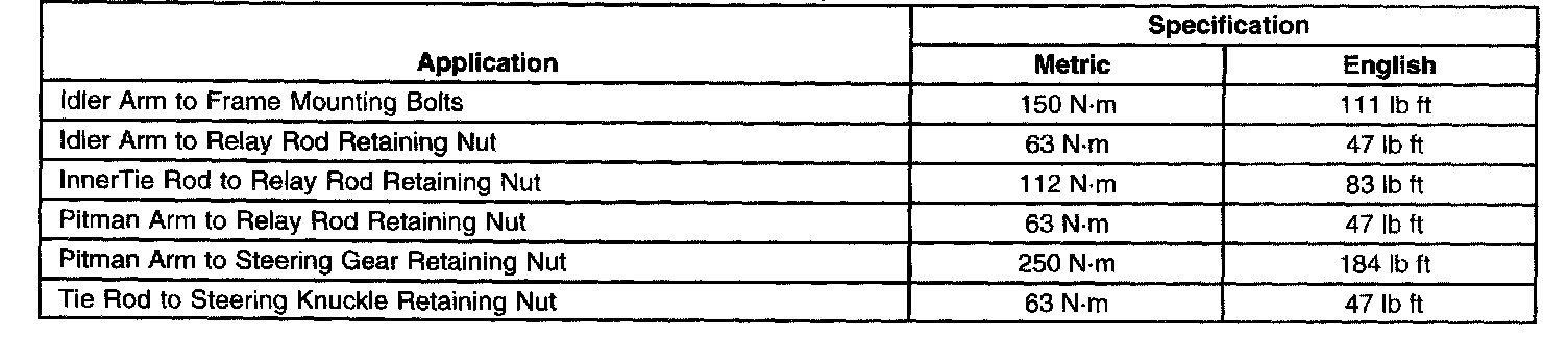 Steering Linkage (Non-Rack & Pinion) Specifications