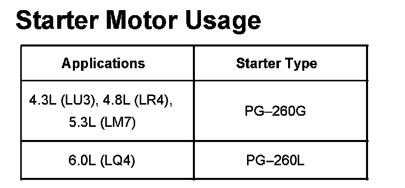 Starter Motor Usage: