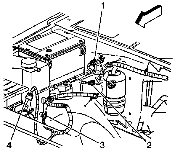 3. Push down on the black clip in order to disconnect the MAF/IAT sensor electrical connector (4).
