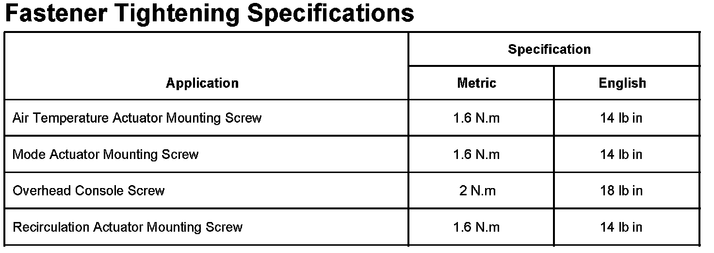 Fastener Tightening Specifications: