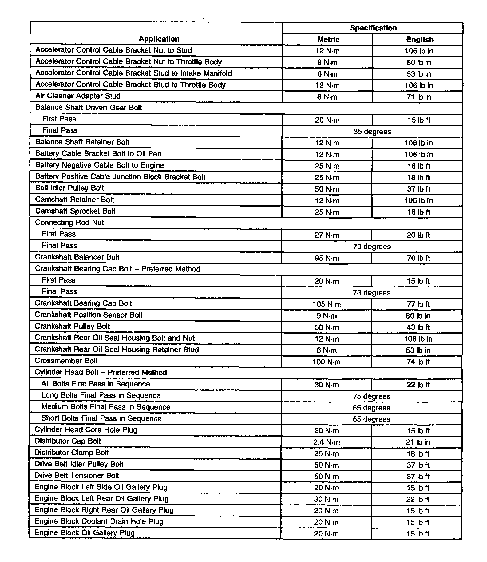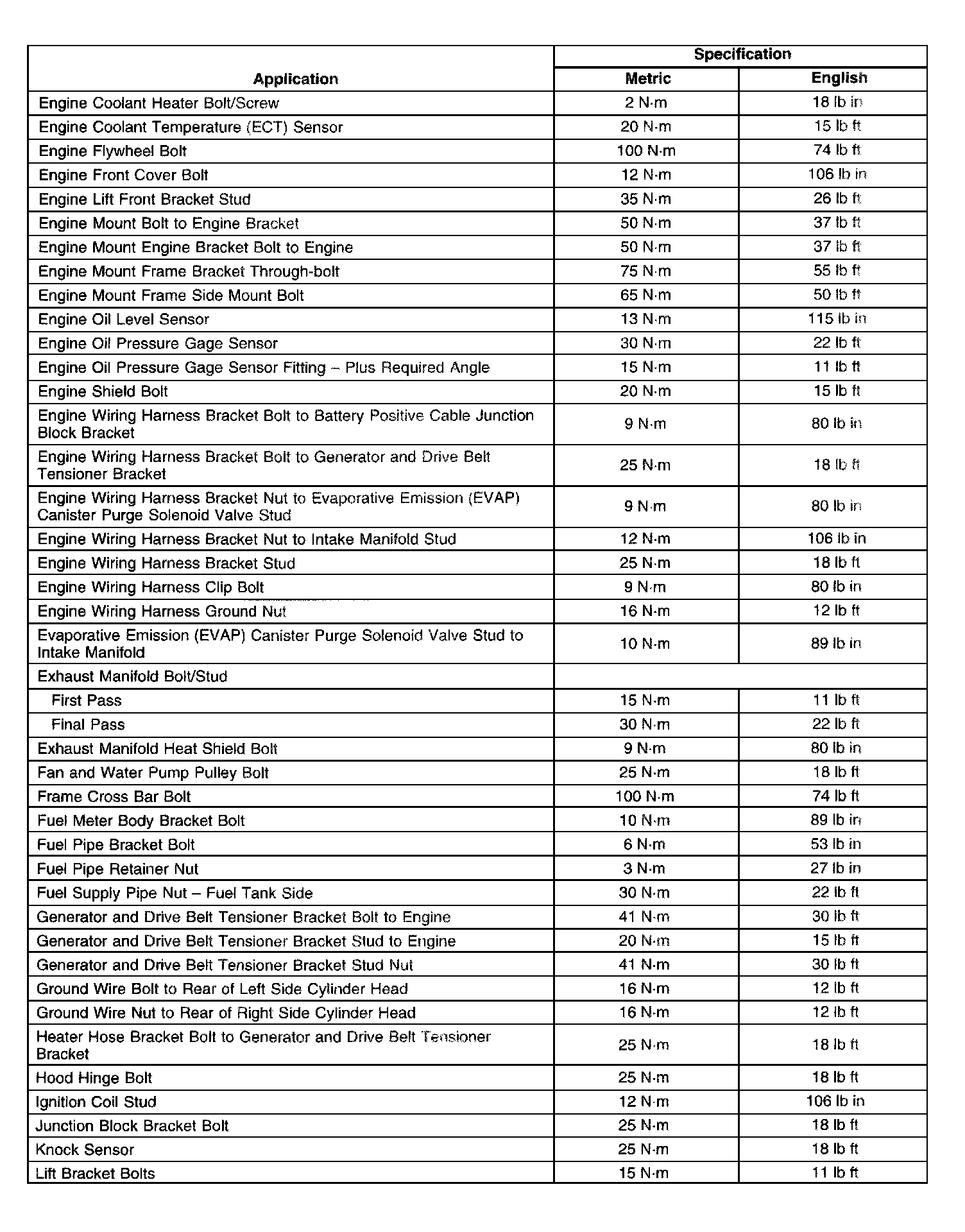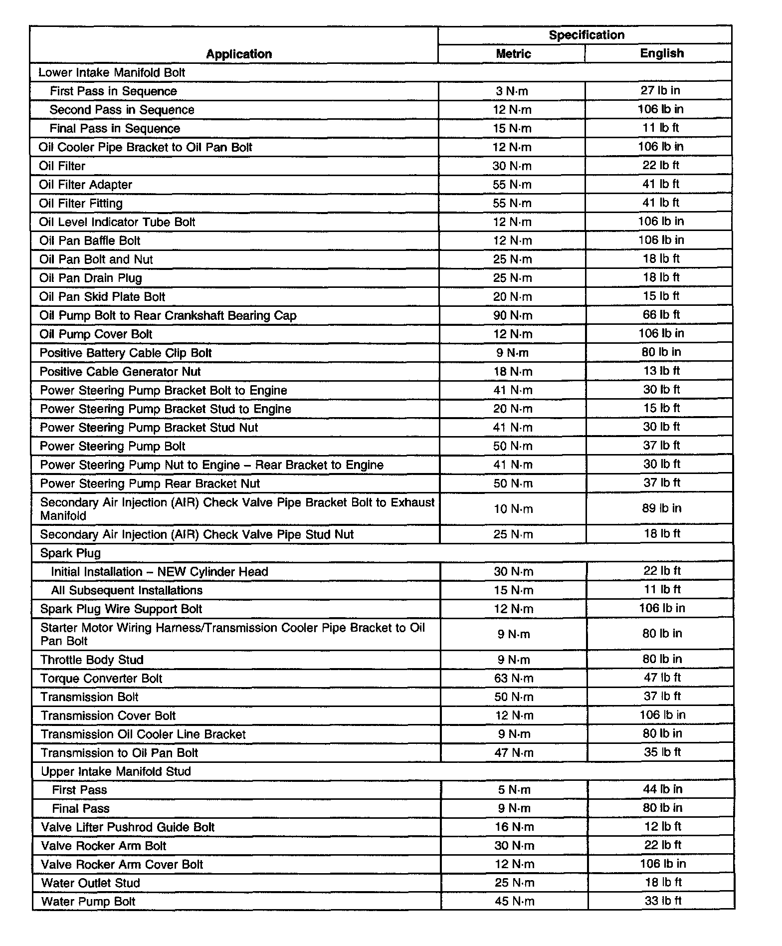 Fastener Tightening Specifications