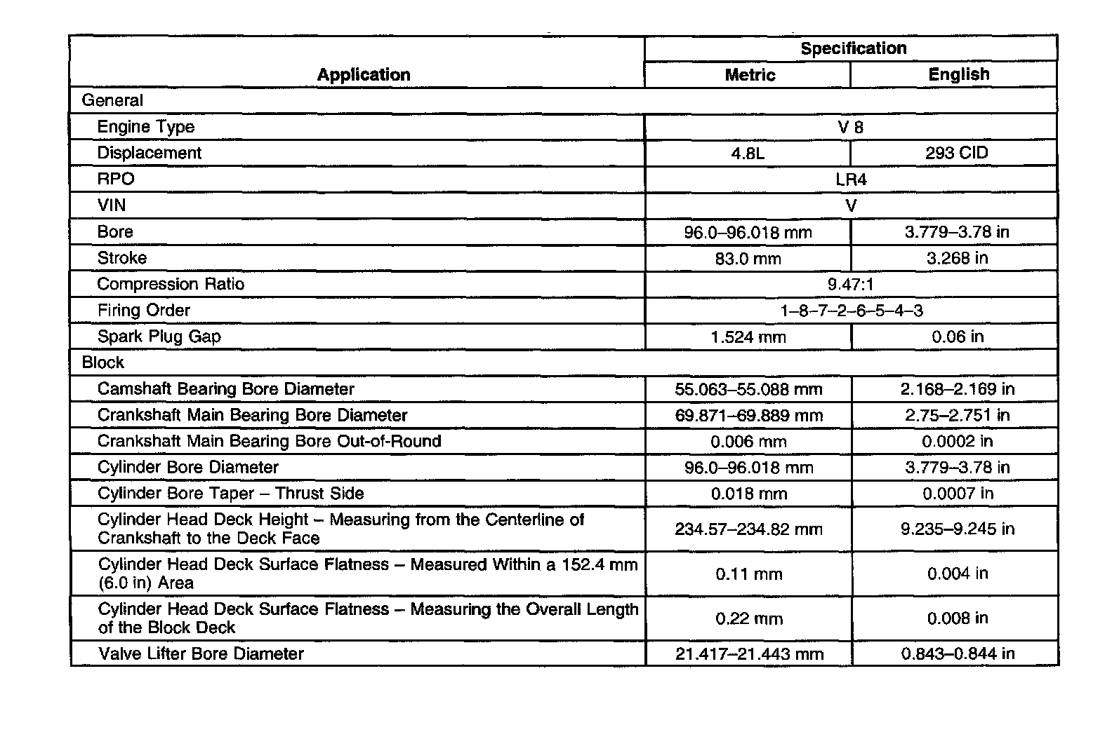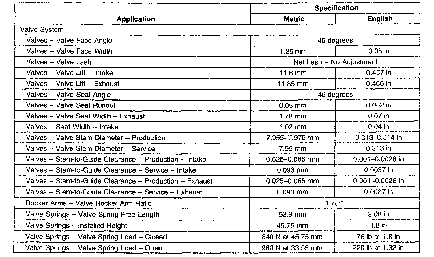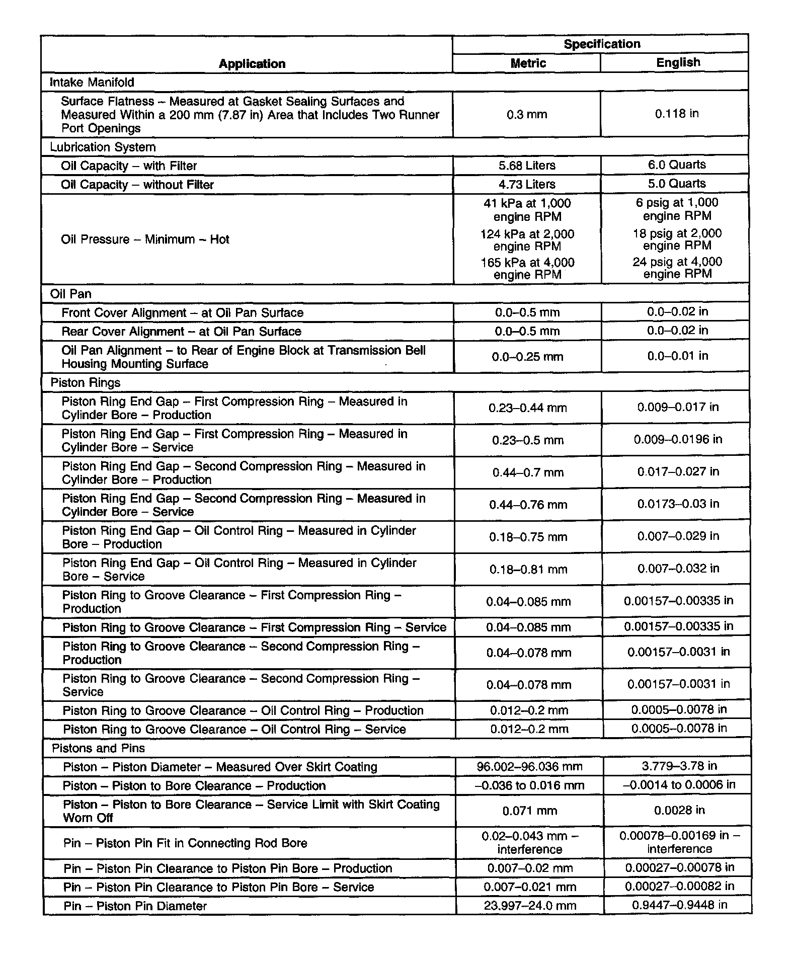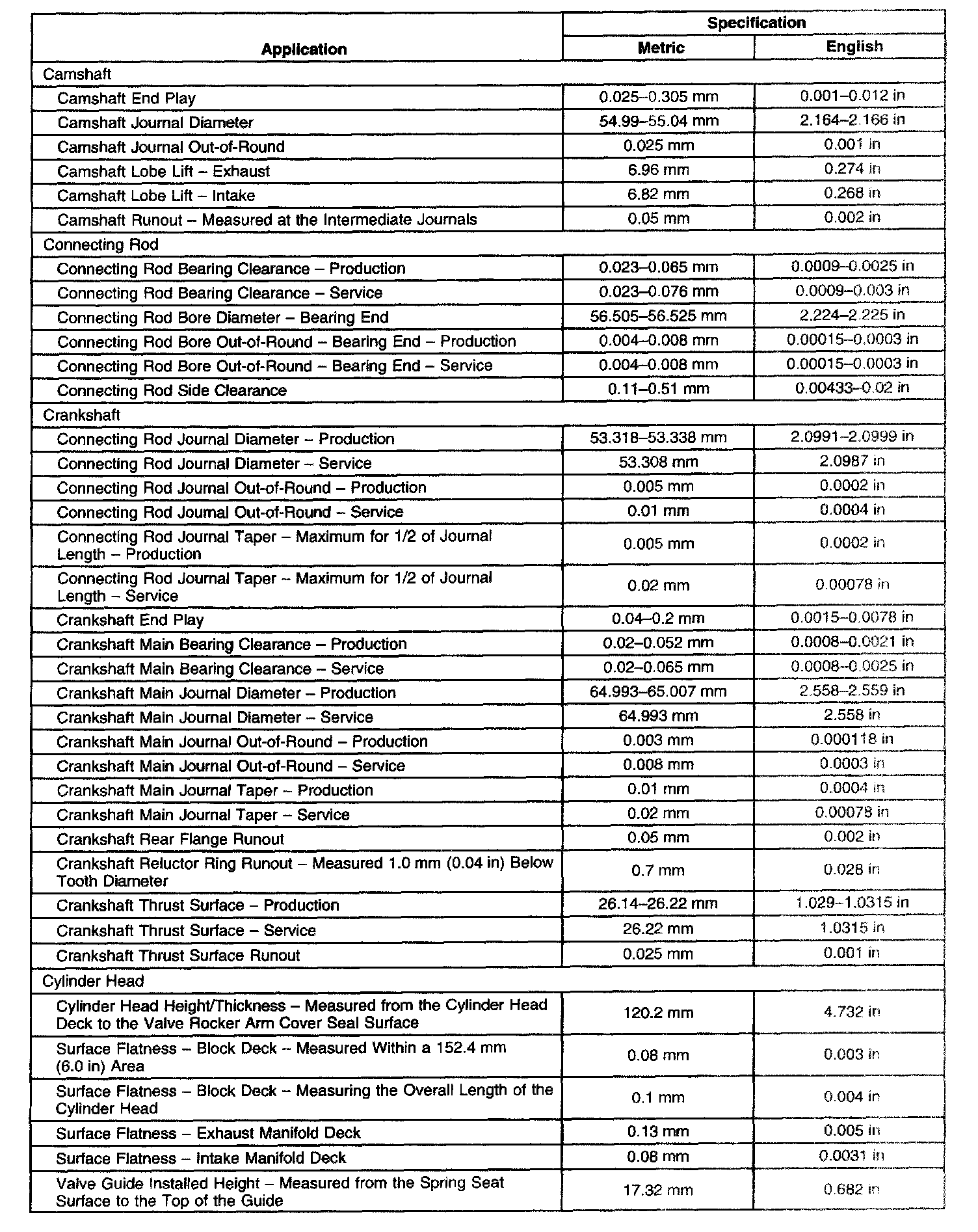 Engine Mechanical Specifications