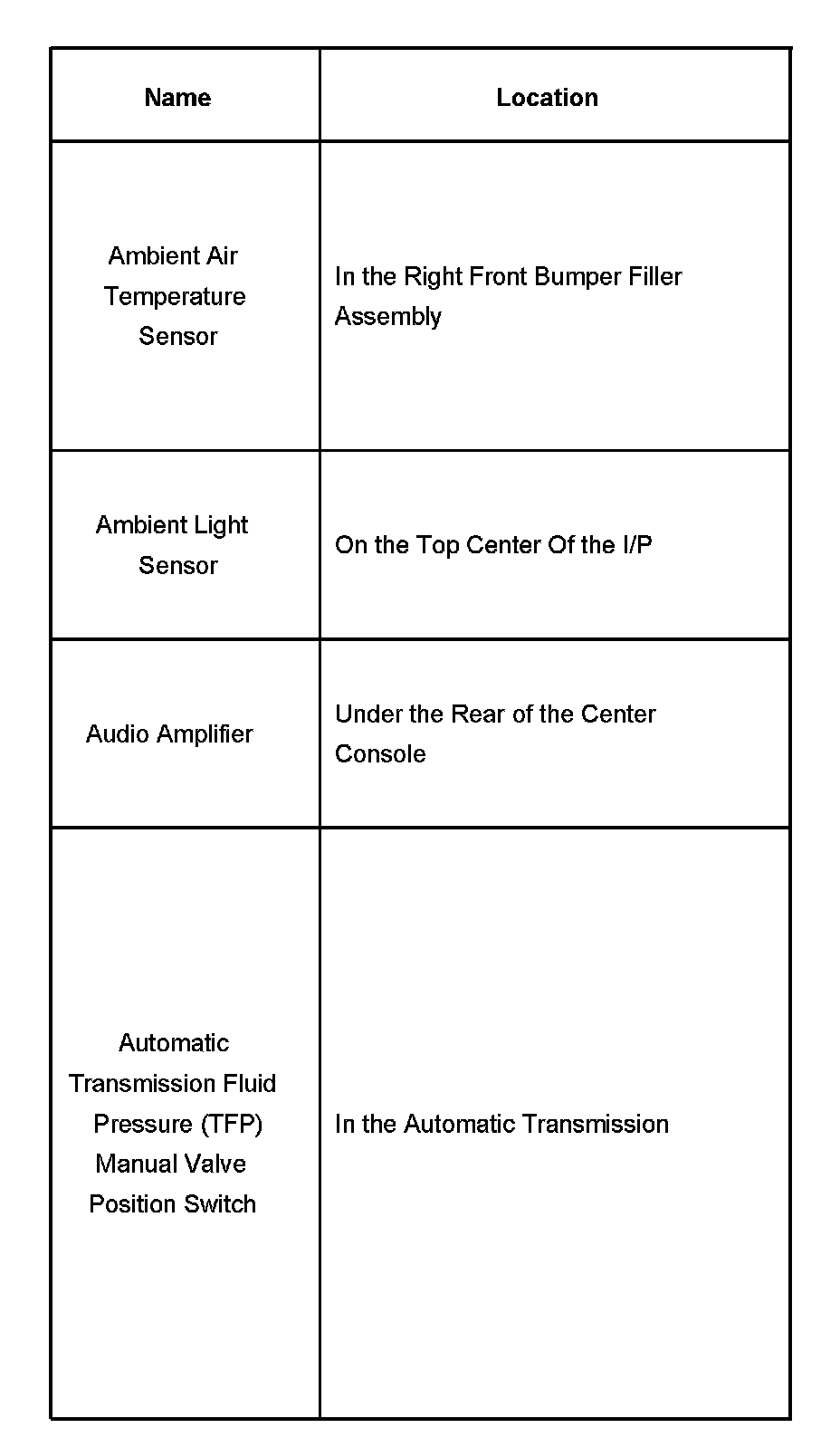 Ambient Air Temperature Sensor - Automatic Transimission Fluid Pressure (TFP) Manual Value Position Switch: