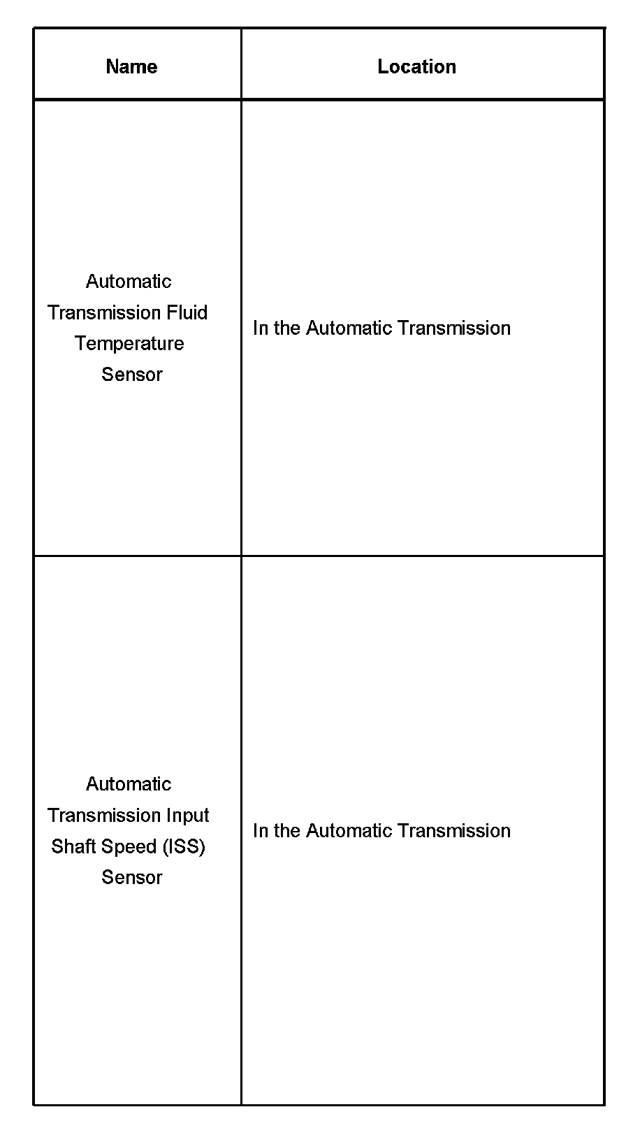 Automatic Transmission Fluid Temperature Sensor - Automatic Transmission Input Shaft Speed (ISS) Sensor: