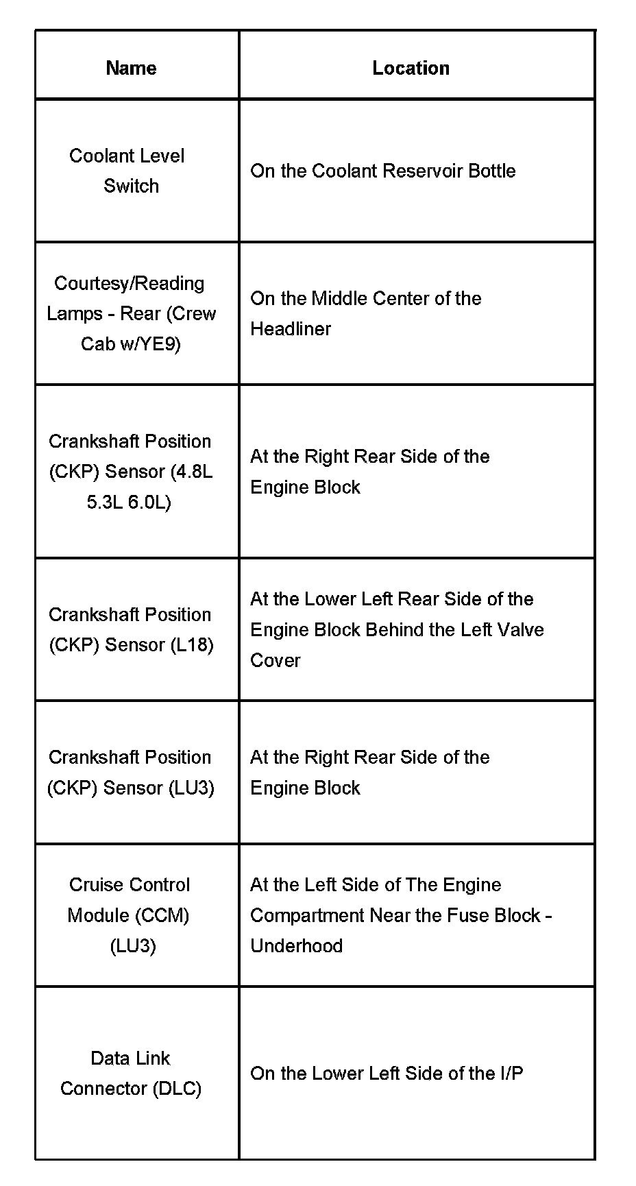 Coolant Level Switch - Data Link Connector: