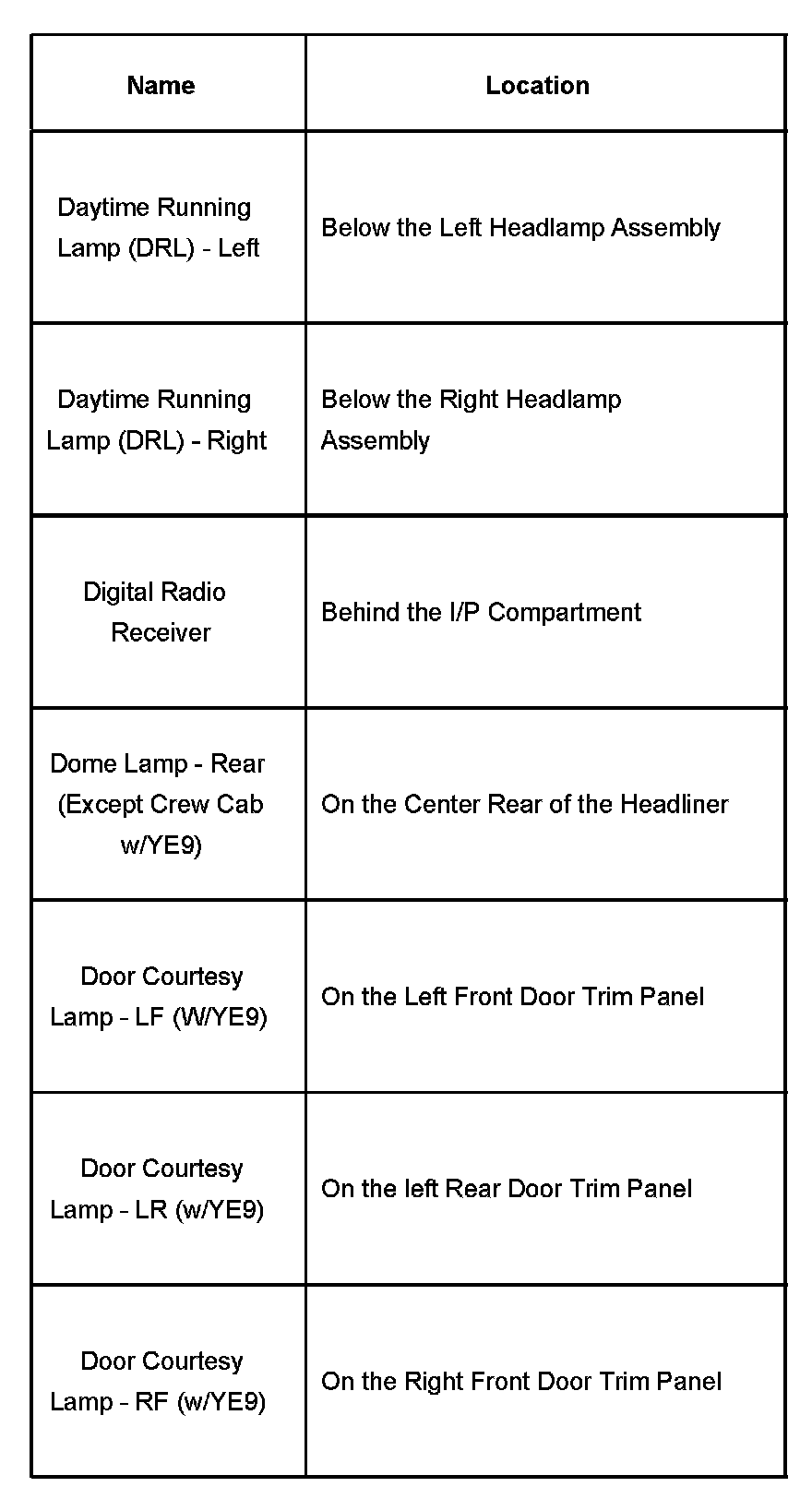 Daytime Running Lamp - Door Courtesy Lamp: