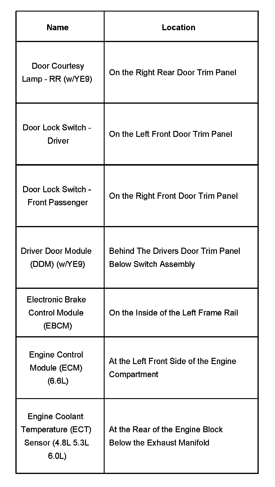 Door Courtesy Lamp - Engine Coolant Temperature Sensor: