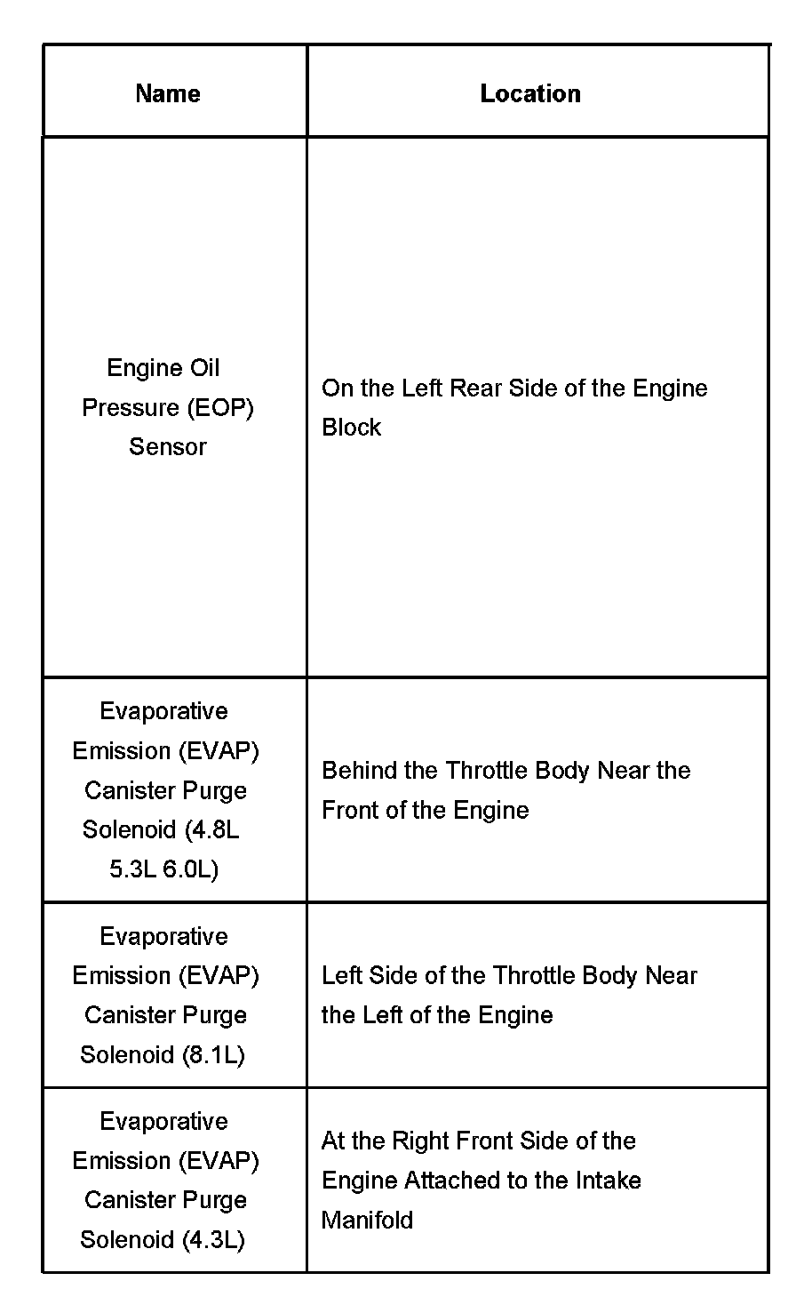 Engine Oil Pressure Sensor - EVAP Purge Solenoid: